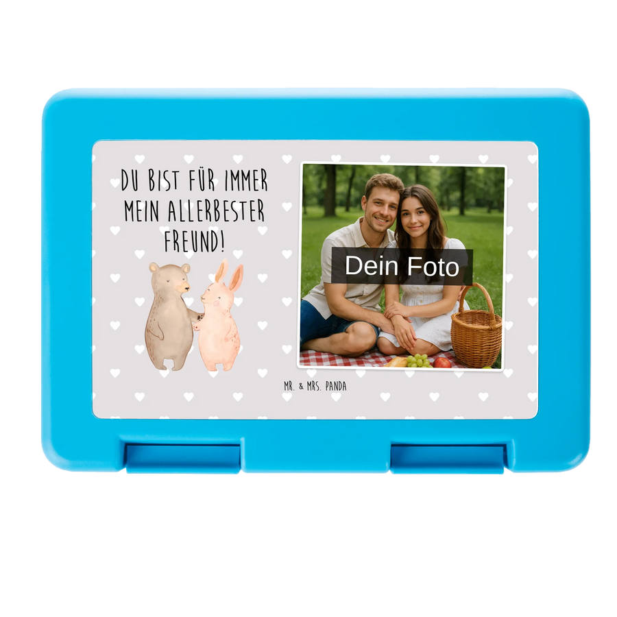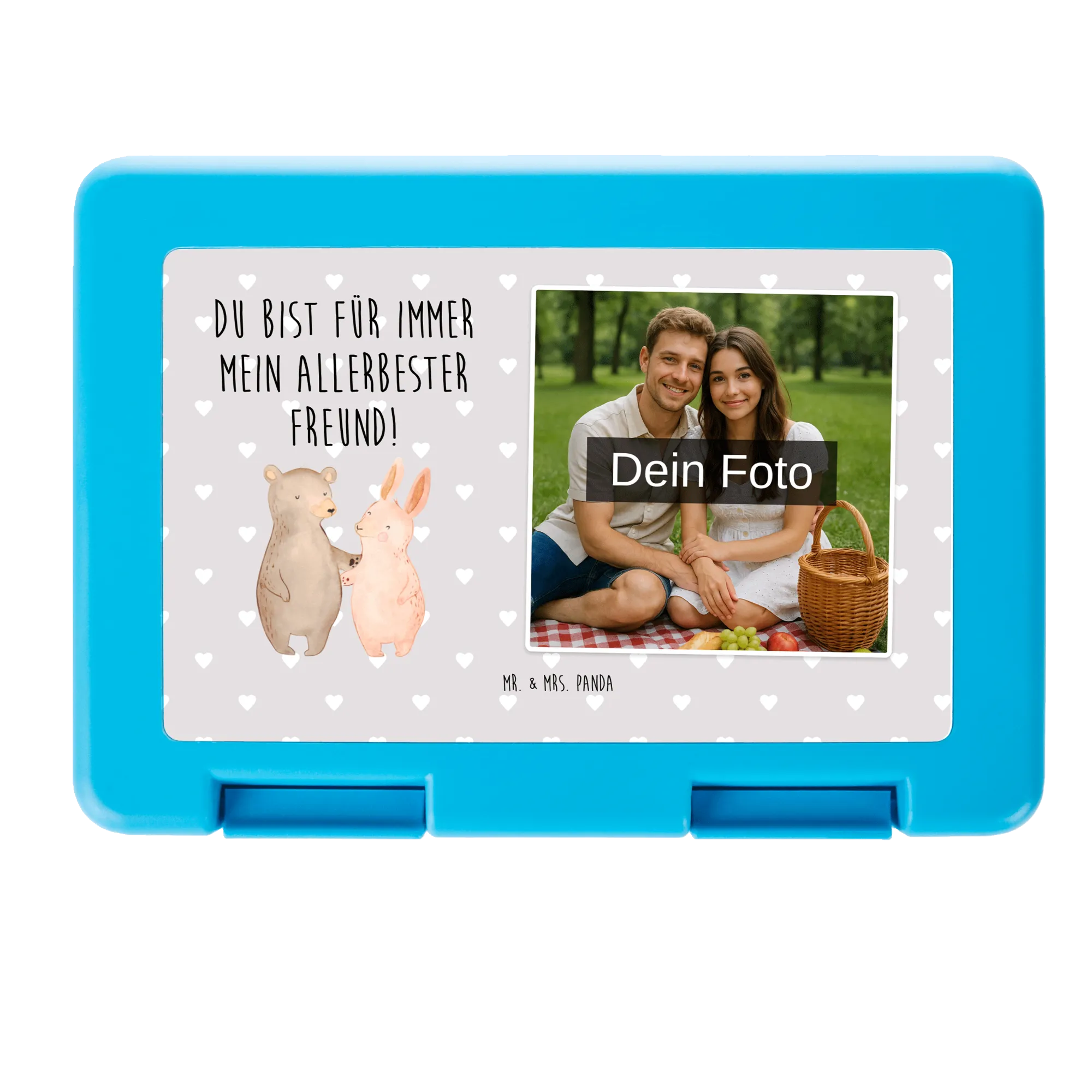 Personalisierte Foto Brotdose Bär und Hase Umarmen