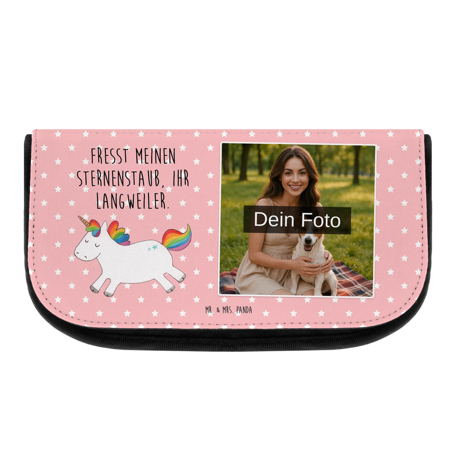 Personalisierte Foto Kosmetiktasche Einhorn Happy