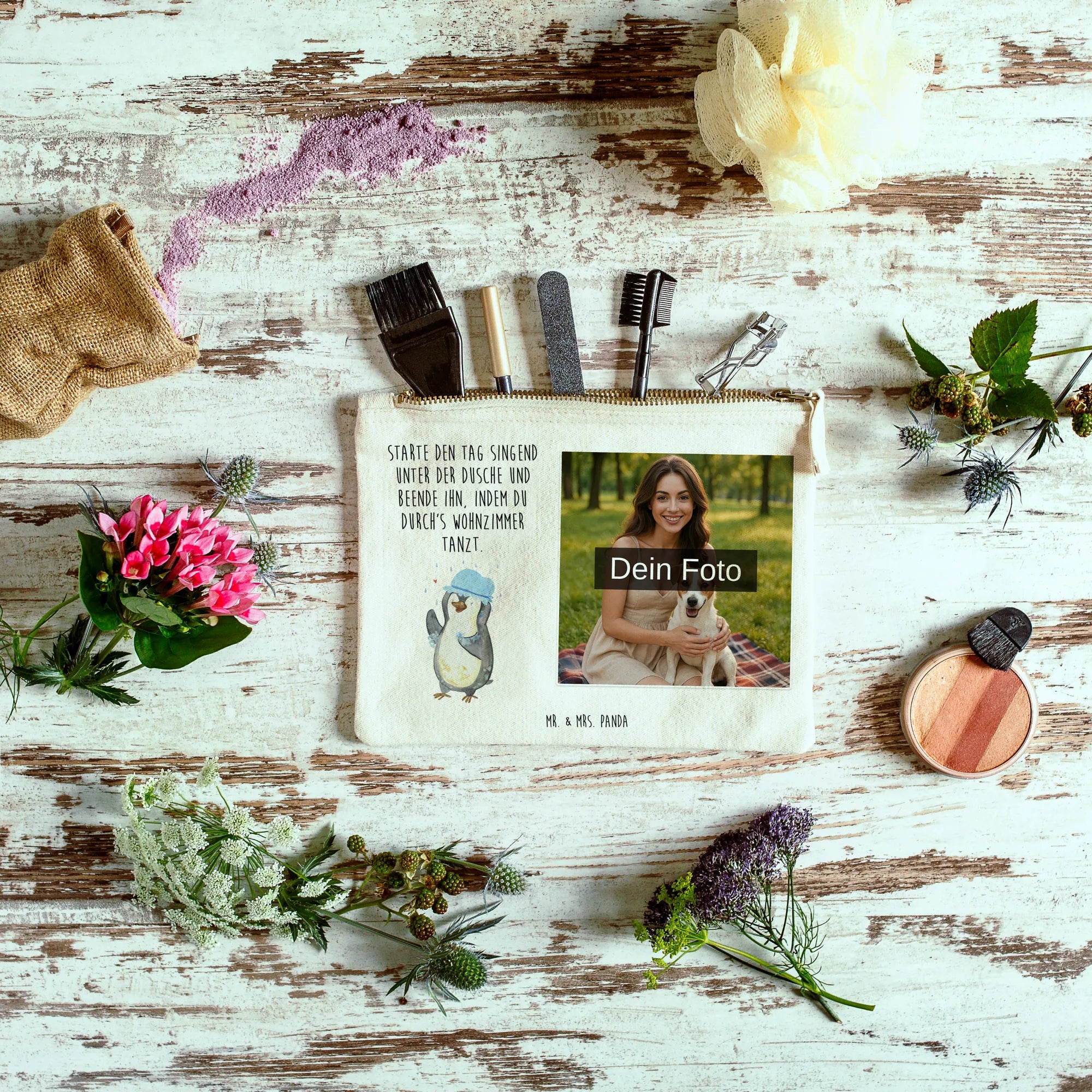 Personalisierte Foto Schminktasche Pinguin Duschen - Größe S Klein