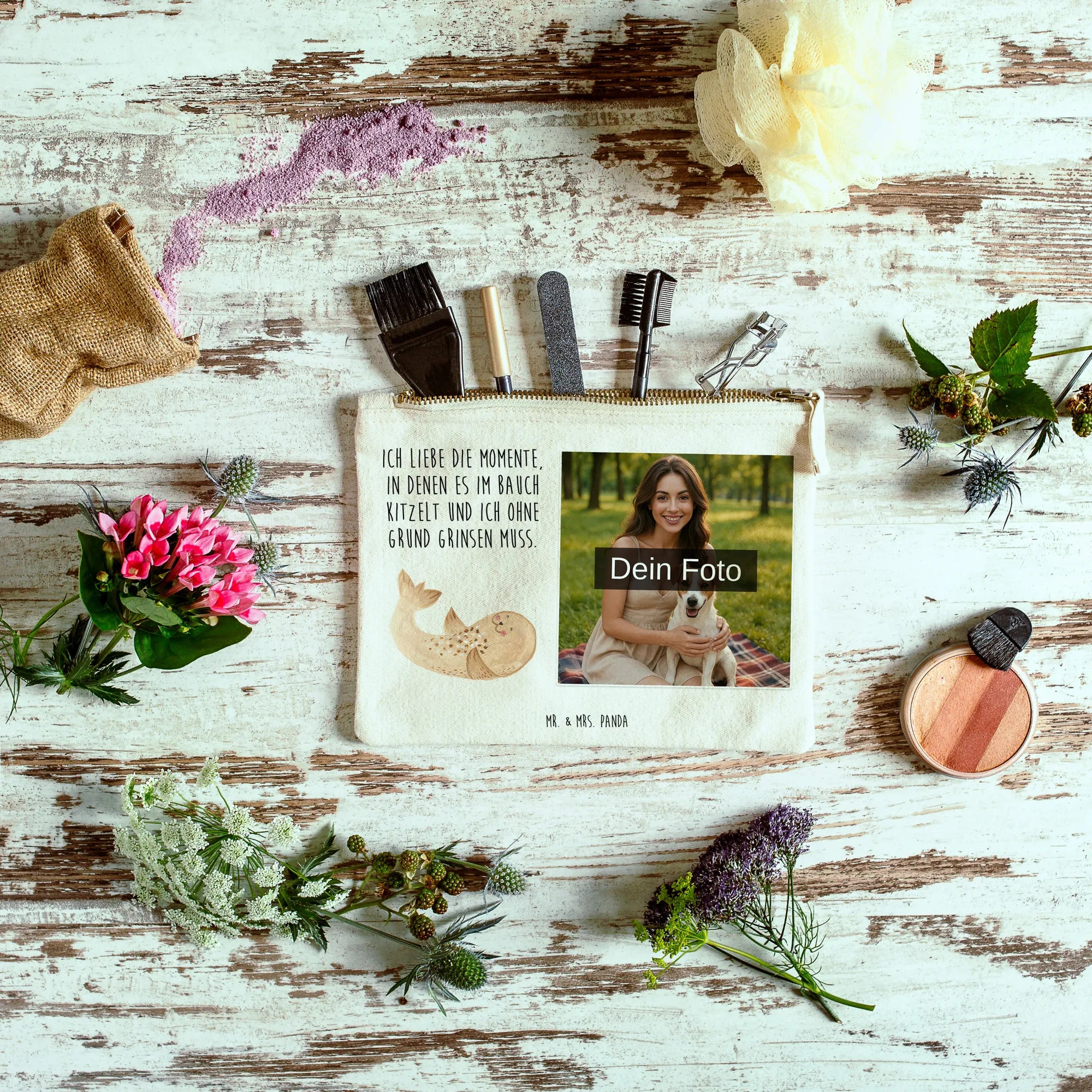 Gestalte deine persönliche Foto Schminktasche von Mr. & Mrs. Panda und lasse deinen individuellen Stil strahlen! Diese praktische Tasche, gefertigt aus 100% weicher Baumwolle, ist in den Größen 20 x 15 cm, 25 x 20 cm und 30 x 25 cm erhältlich. Nutze die Gelegenheit, dein Lieblingsfoto hochzuladen und sorge dafür, dass deine Schminkutensilien stilvoll verstaut sind. Die entzückenden Drucke mit witzigen Sprüchen bringen Freude in deinen Alltag. Ob für Kosmetikartikel, als Stiftemäppchen oder für wichtige Dokumente – diese Tasche ist vielseitig einsetzbar. Dank der umsäumten und eingeschlagenen Innennähte bleibt sie stets in Form. Pflege sie einfach mit lauwarmer Handwäsche, und sie wird dir lange Freude bereiten!
