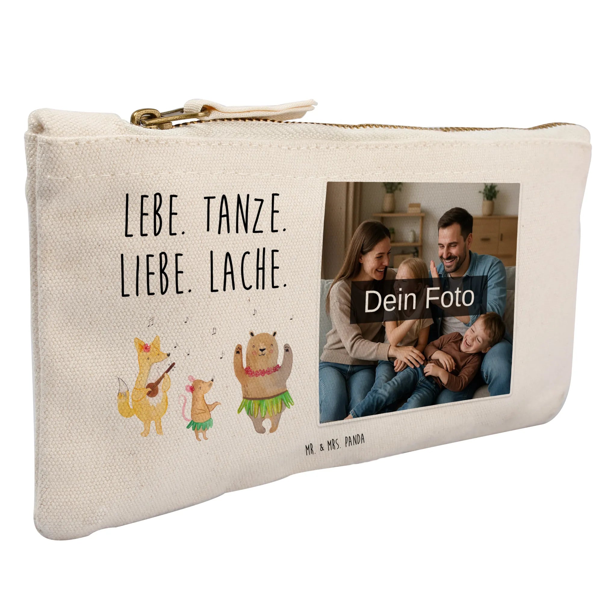 Schaffe dir deine ganz persönliche Foto Schminktasche von Mr. & Mrs. Panda! Diese wunderschöne Tasche, die in den Größen 20 x 15 cm, 25 x 20 cm und 30 x 25 cm erhältlich ist, ist aus zarter 100% Baumwolle gefertigt. Lass dein Wunschfoto drucken und setze so deinen individuellen Akzent. Diese Schminktasche bietet ausreichend Platz für all deine Kosmetikartikel, Belege oder auch für Stifte - sie ist ein wahres Multitalent! Die tollen Designs und inspirierenden Sprüche sorgen jederzeit für gute Laune. Für optimale Langlebigkeit empfehlen wir eine Pflege mit lauwarmem Wasser, damit sie dir lange Freude bereitet. Die umsäumten Innennähte machen sie besonders formstabil.
