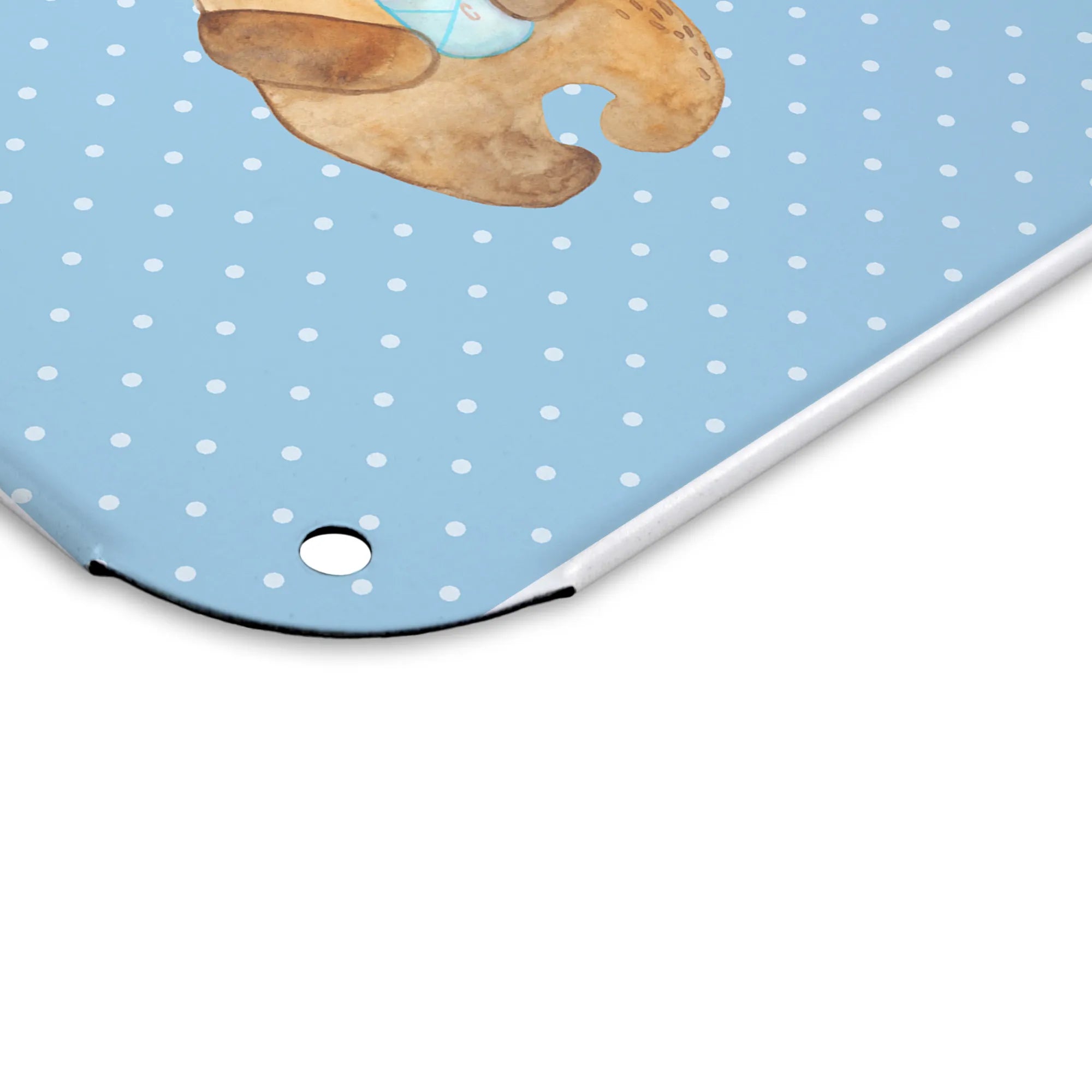 Dieses personalisierte Blechschild ist ein kleines Kunstwerk von Mr. & Mrs. Panda – bedruckt mit süßen Motiven und liebevollen Sprüchen, personalisierbar mit deinem Wunschfoto. Das Material ist hochwertiges Stahlblech ohne Wölbung, die Oberfläche seidenmatt und der Druck langlebig und brillant. Damit das Foto perfekt wirkt, lade bitte eine Datei mit hoher Auflösung hoch und wähle einen passenden Bildausschnitt, damit keine Gesichter oder Details abgeschnitten werden. Achte außerdem auf Bildrechte, besonders bei Fotos mit Personen. Maße: 70 mm x 148 mm x 210 mm. Das Schild hat abgerundete Ecken, umgefalzte Kanten und vier Bohrungen für eine einfache Montage an Tür oder Wand. Es ist ideal für den Innenbereich – ob Flur, Büro oder Wohnzimmer. Du kannst es als persönliche Geschenkidee nutzen oder deine Wohnung individuell verschönern. In verschiedenen Größen erhältlich, sodass du genau das richtige Format findest. Die Pflege ist unkompliziert: einfach mit einem feuchten Tuch abwischen. Hol dir jetzt dein personalisiertes Blechschild und bring mit Mr. & Mrs. Panda Herzlichkeit und Stil in dein Zuhause.