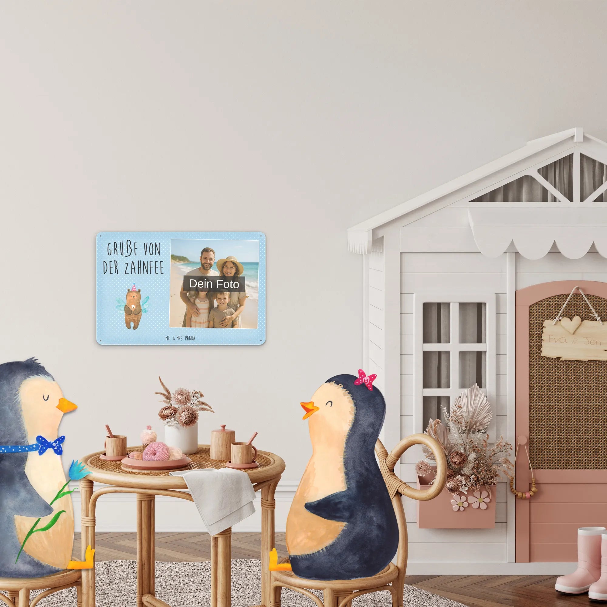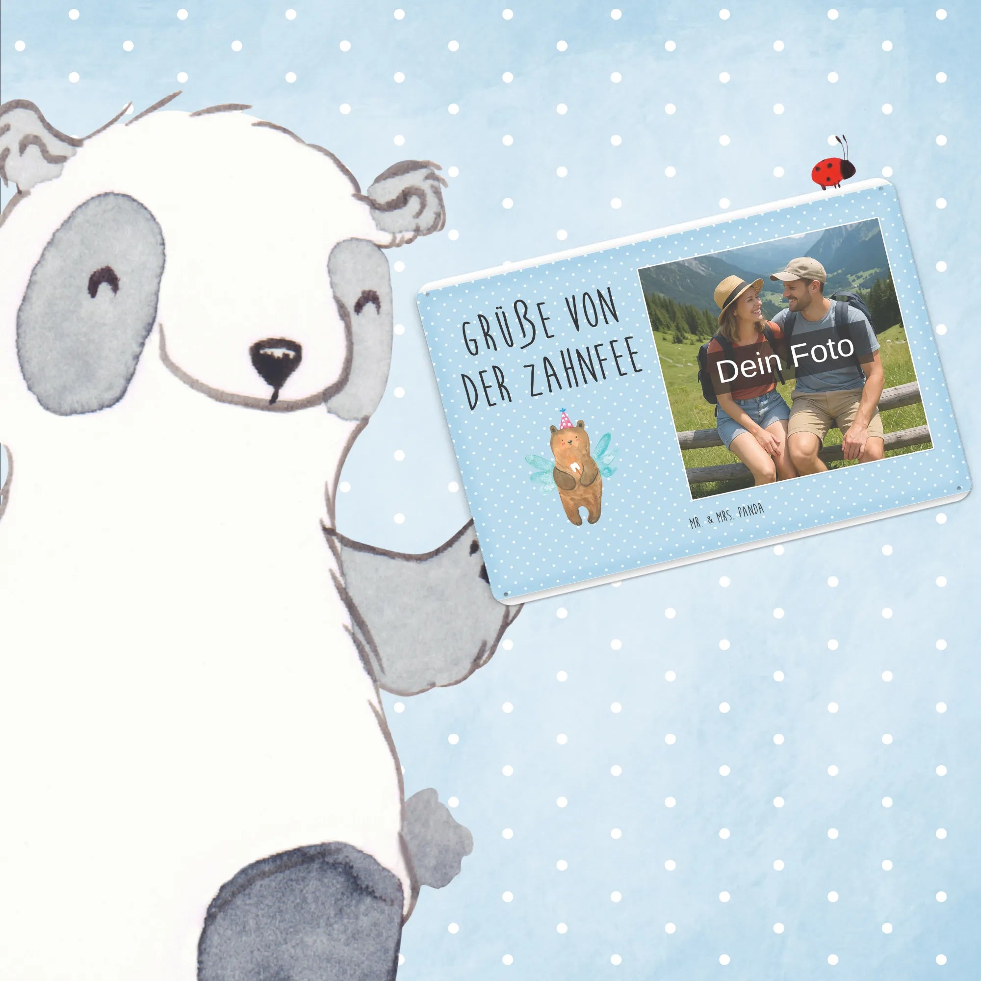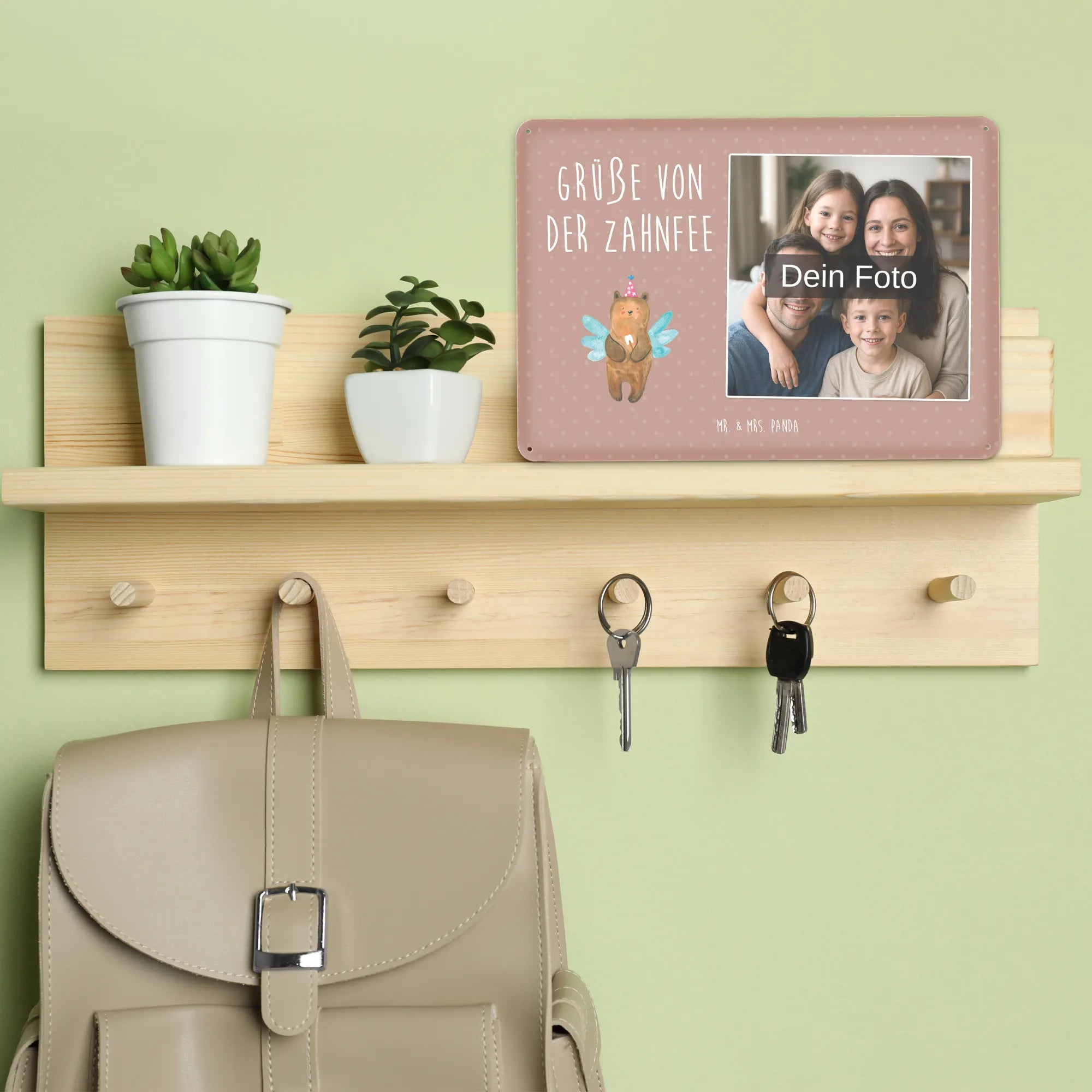 Personalized Photo Metal Sign bear tooth fairy - DIN A6 - Pastel Brown