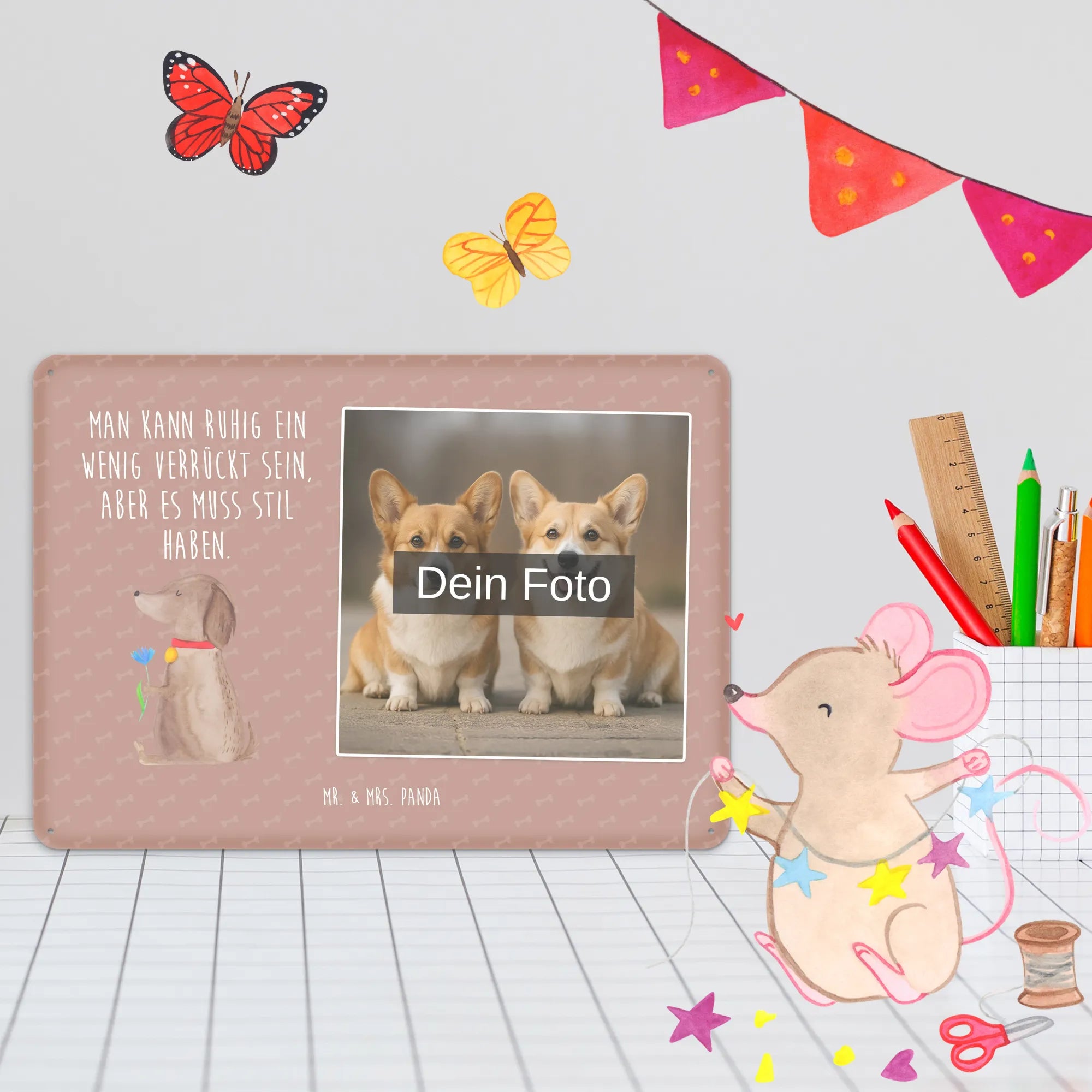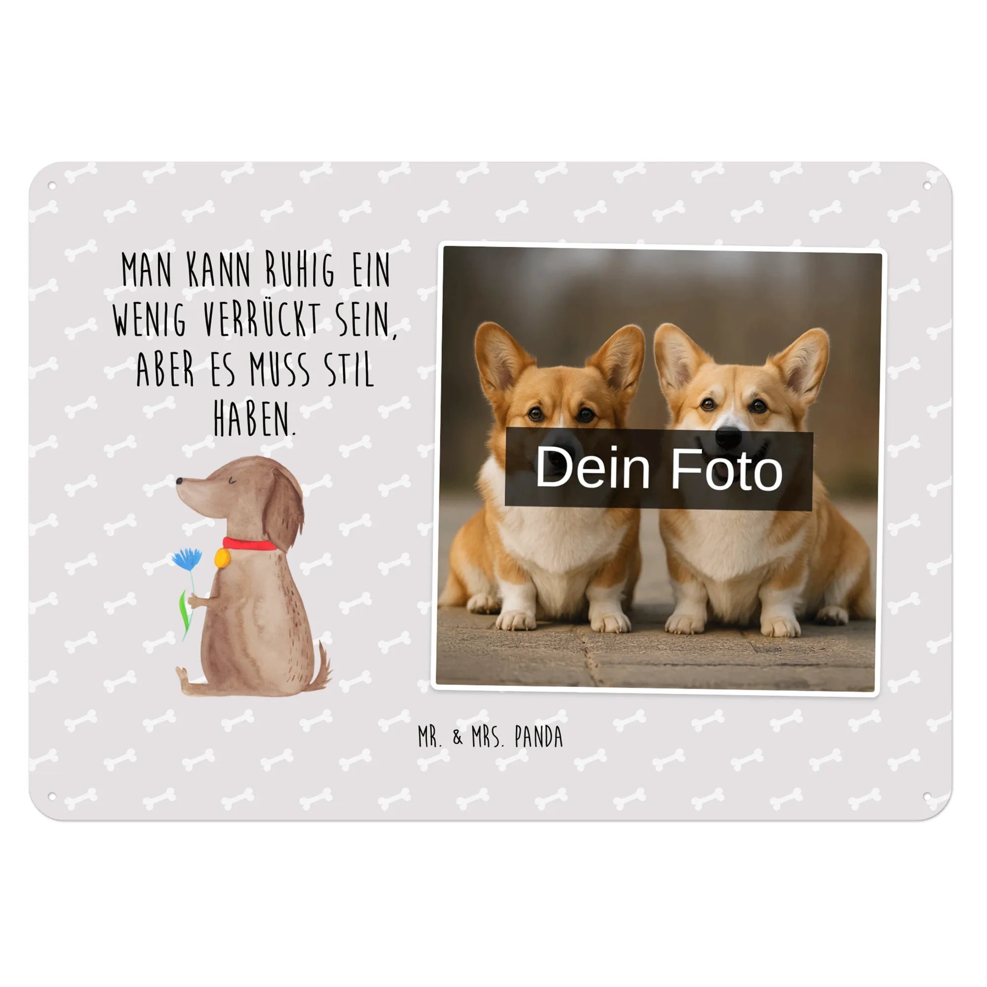 Personalized Photo Metal Sign Dog flower - DIN A6 - Hundeglück