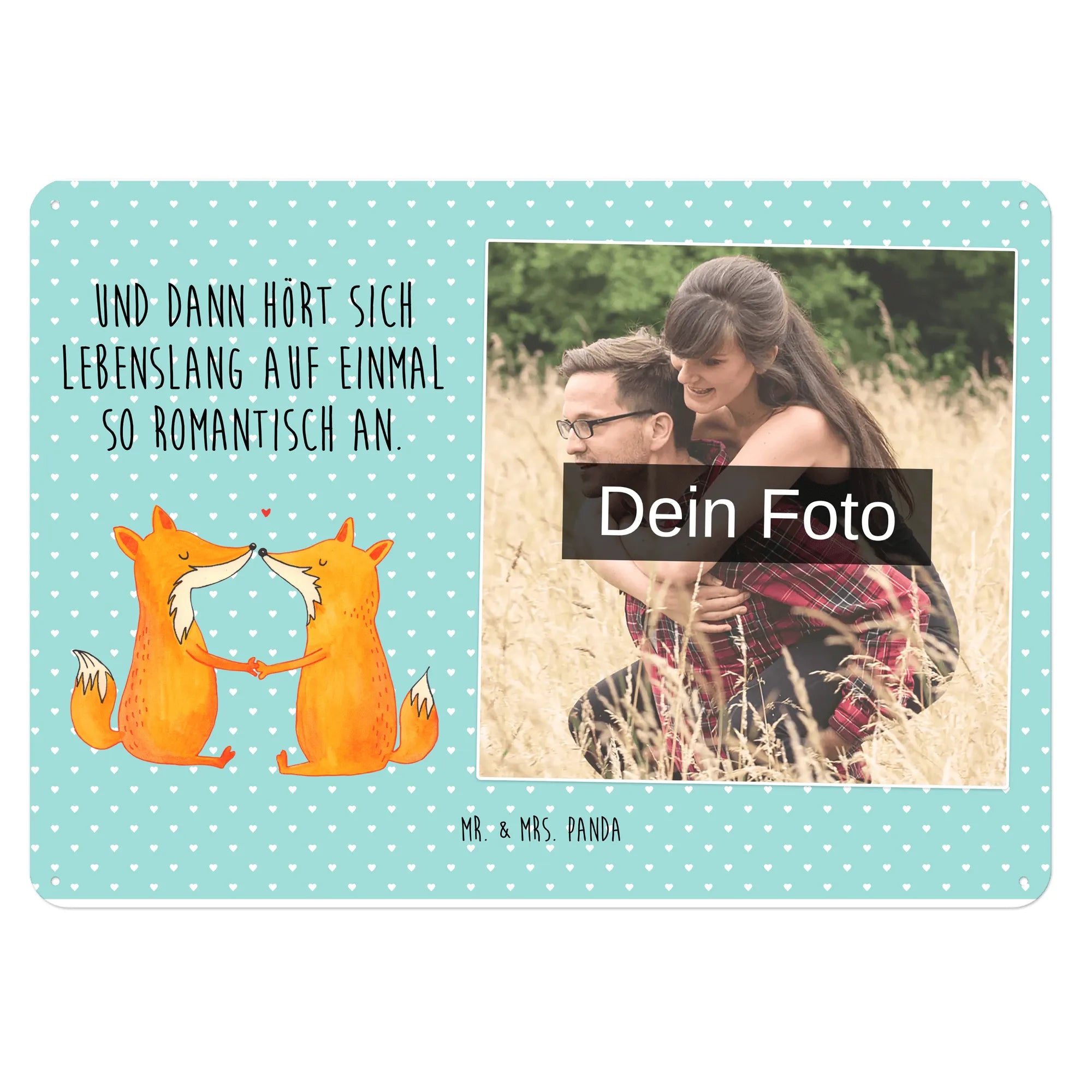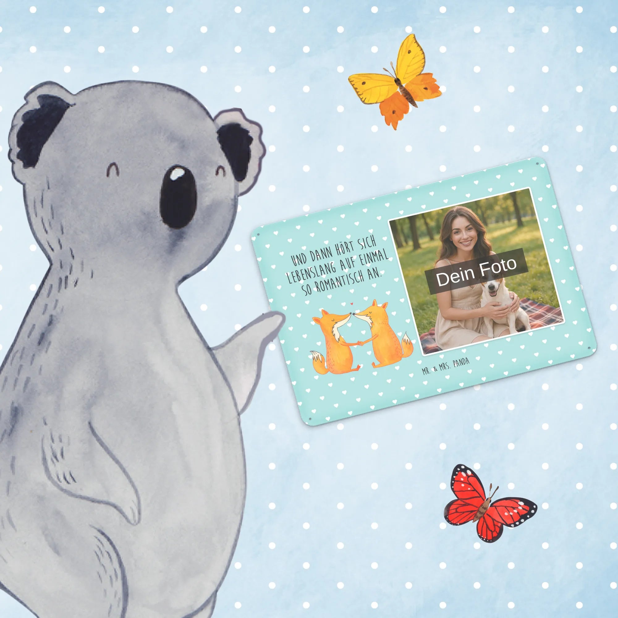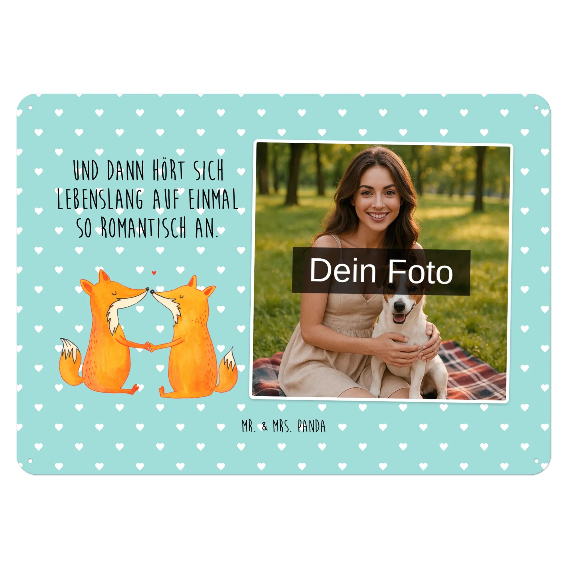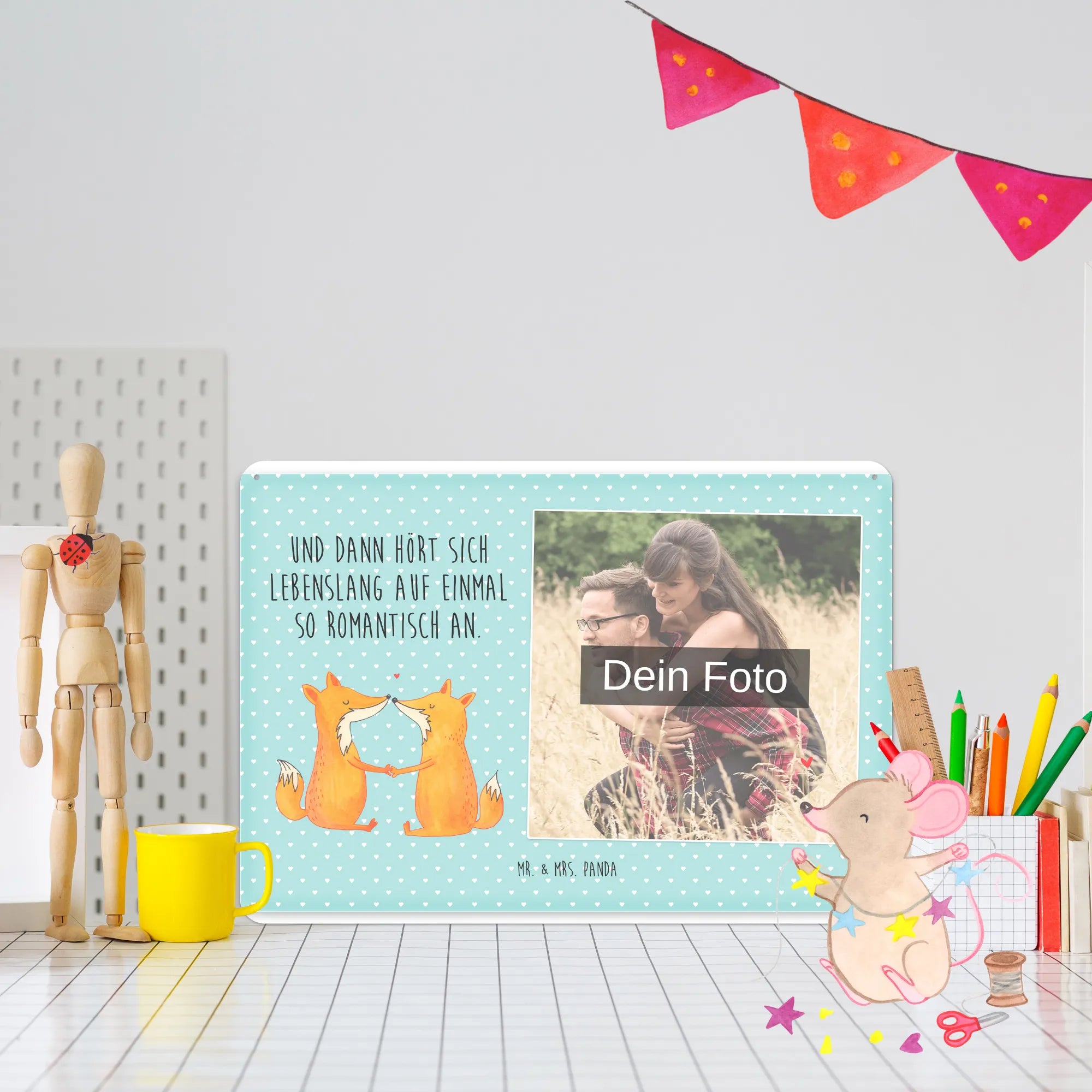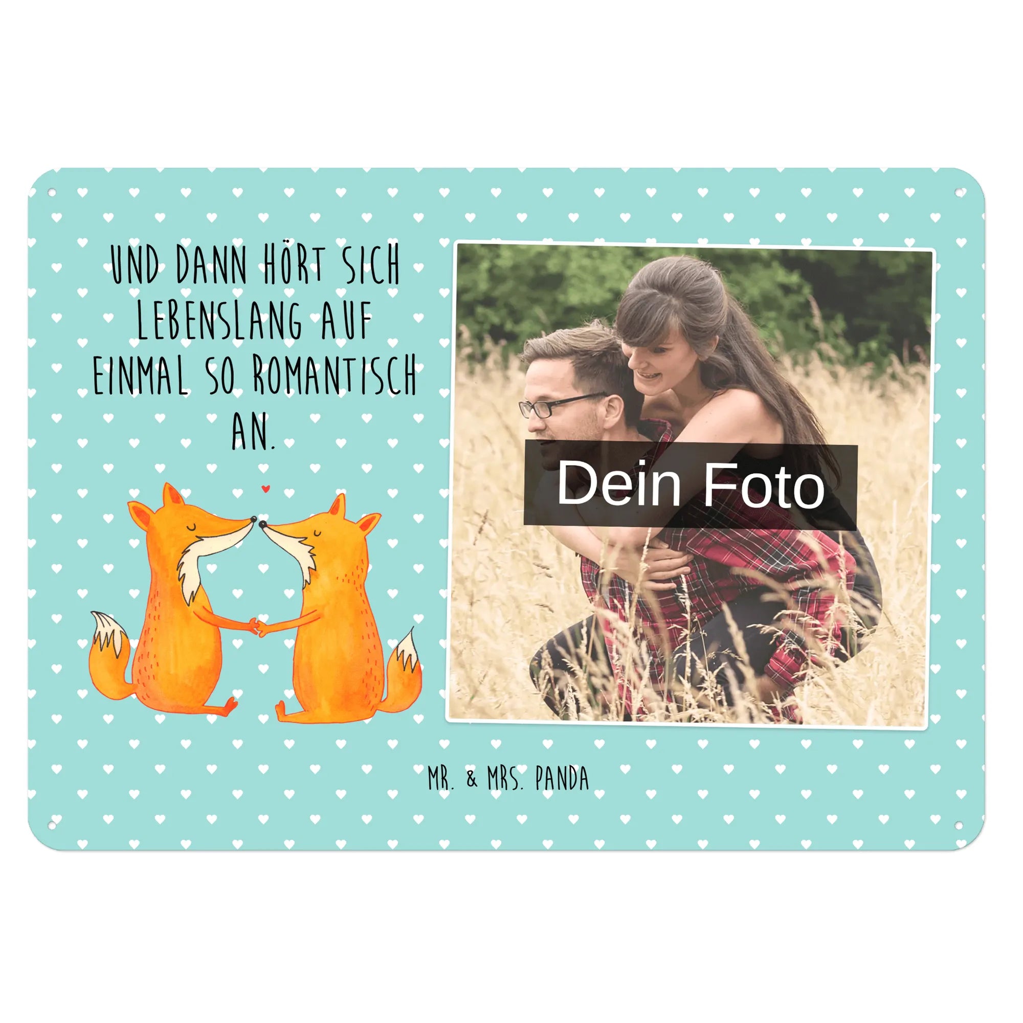 Personalized Photo Metal Sign foxes Love - DIN A6 - Türkis Pastell