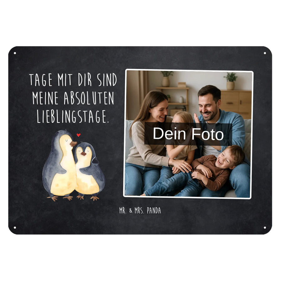 Personalized Photo Metal Sign Penguin embrace - DIN A6 - Kreidetafel