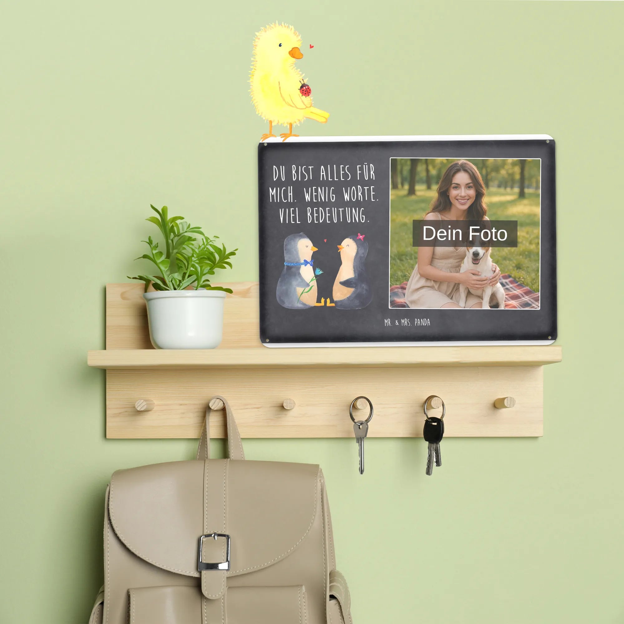 Personalized Photo Metal Sign Penguin pair - DIN A6 - Chalkboard