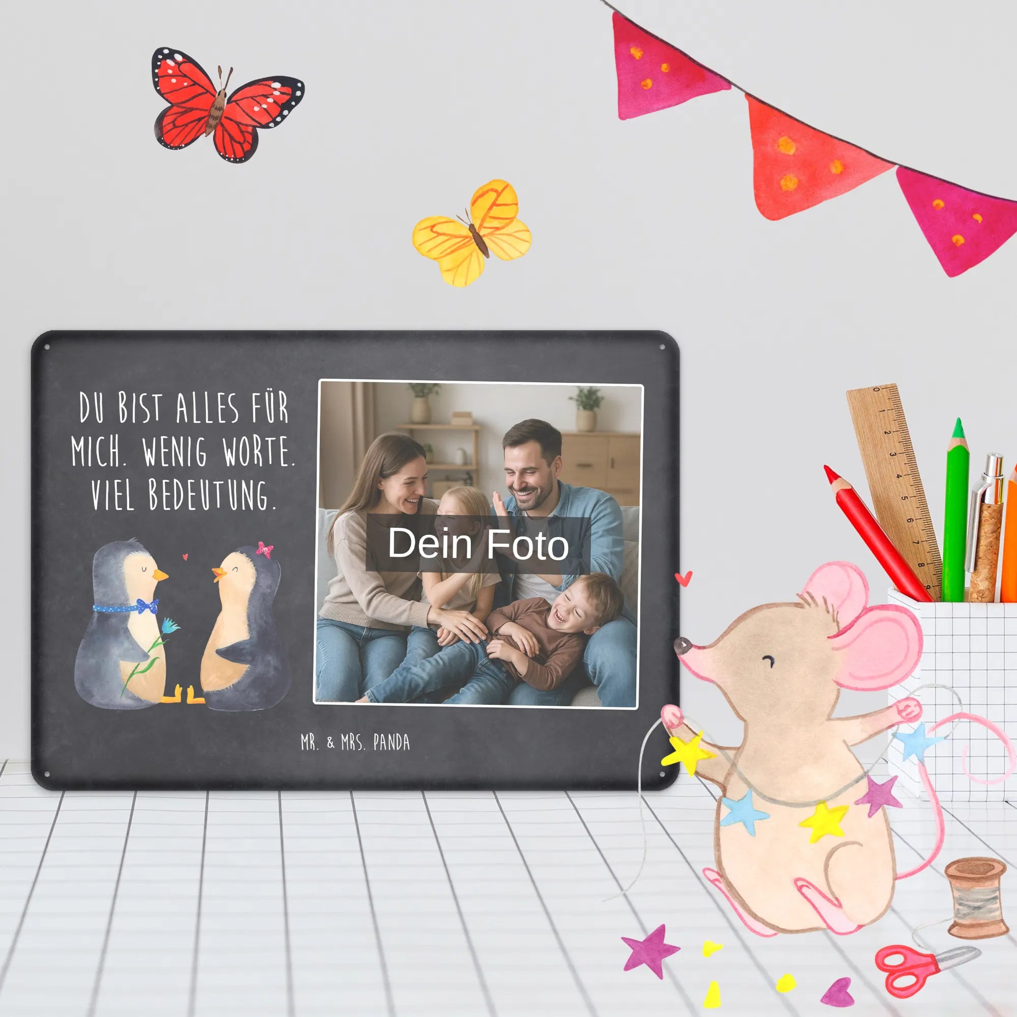 Schenke Persönlichkeit: Erstelle jetzt dein personalisierbares Blechschild Foto mit Mr. & Mrs. Panda – Foto hochladen, Text hinzufügen, bestellen und Freude verschenken.