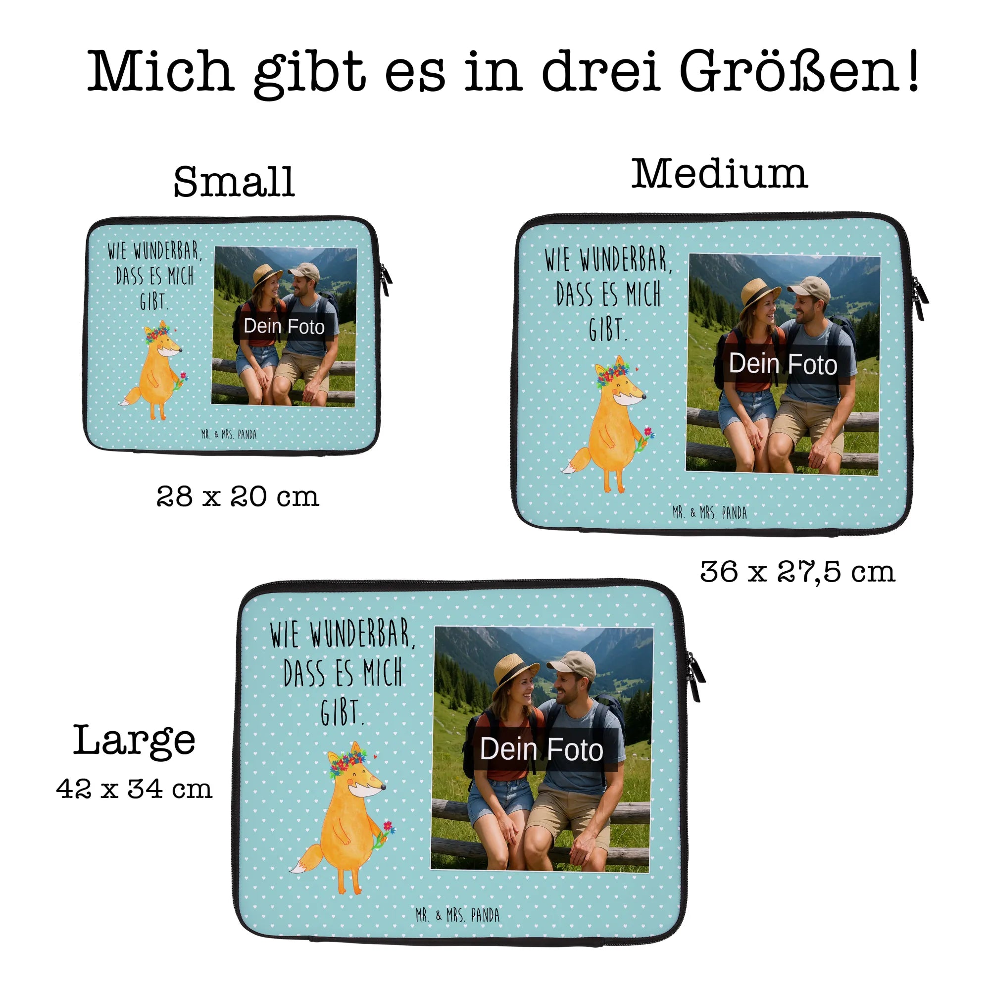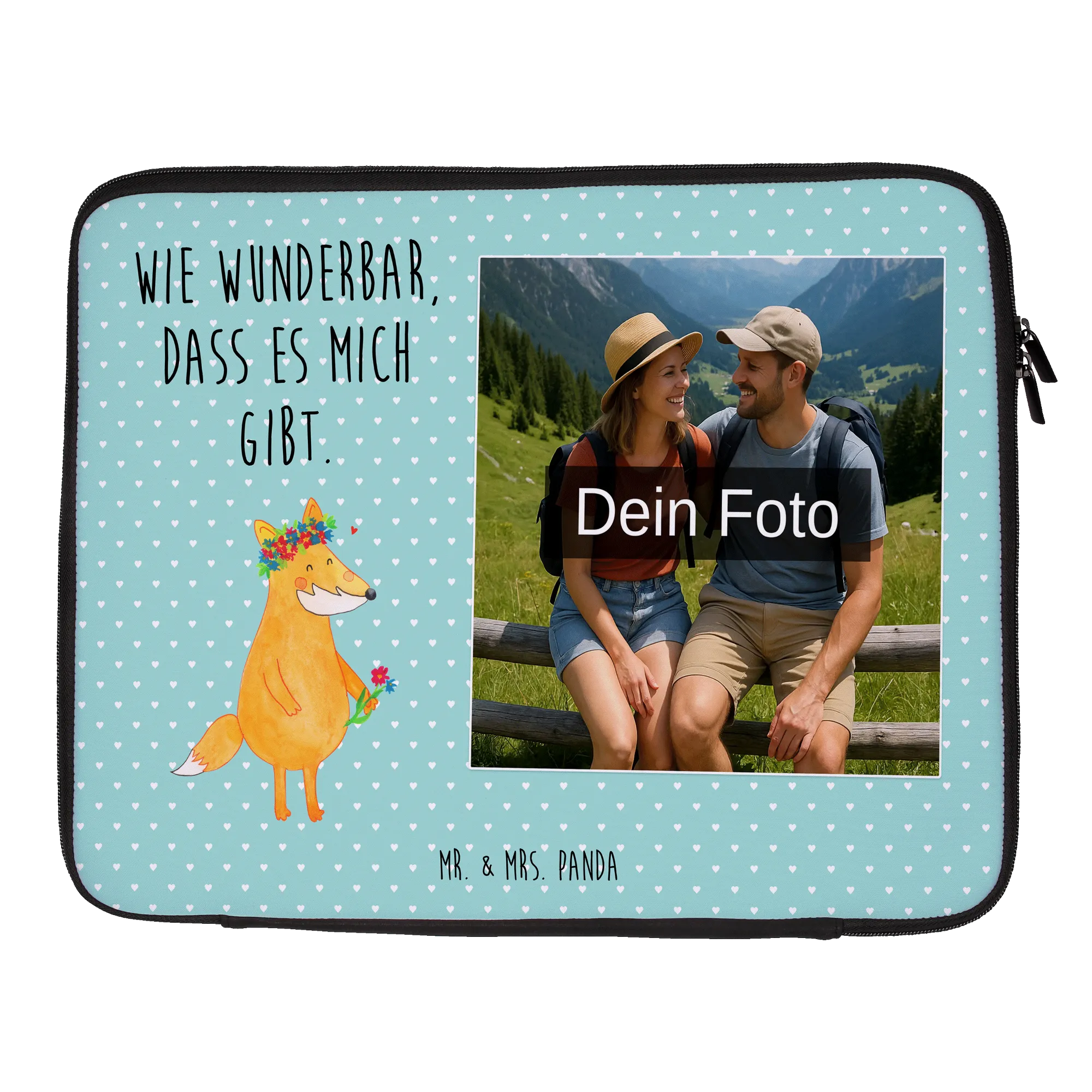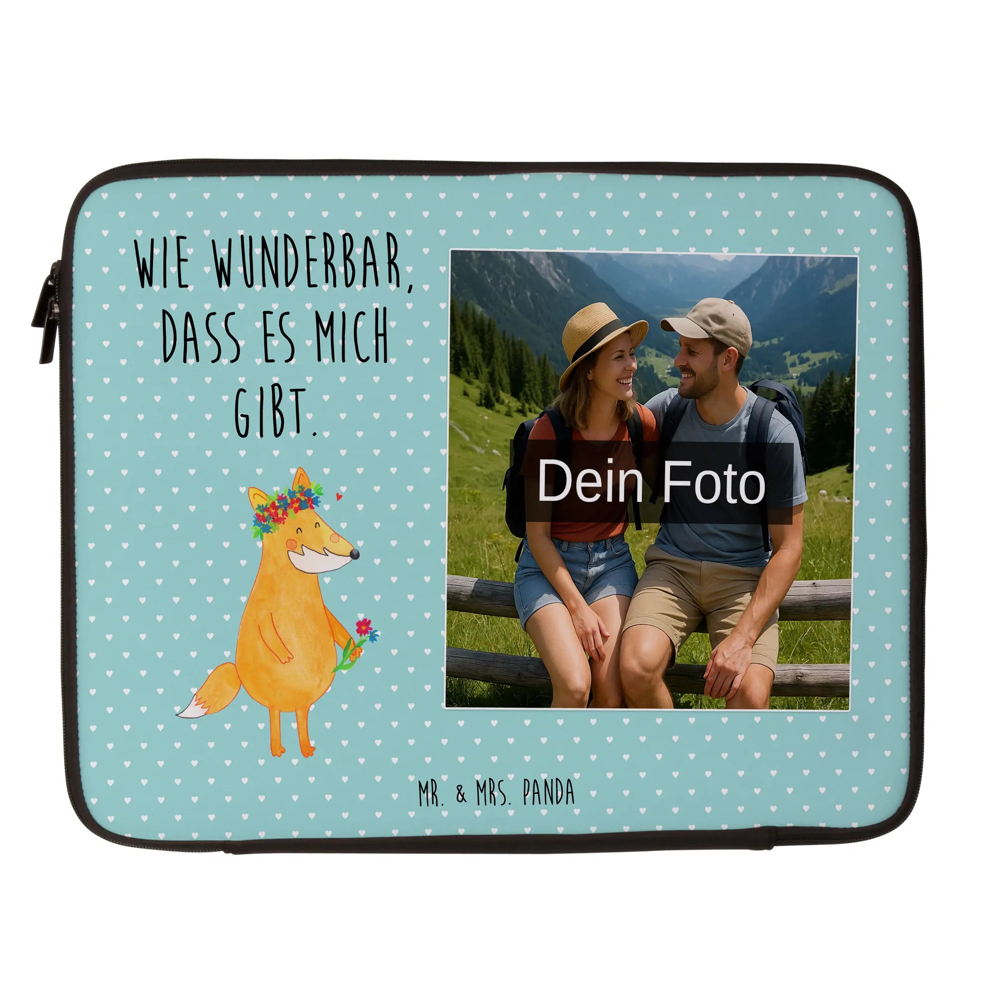 Personalisierte Foto Notebook Tasche Fuchs Blumen – Mr. & Mrs. Panda