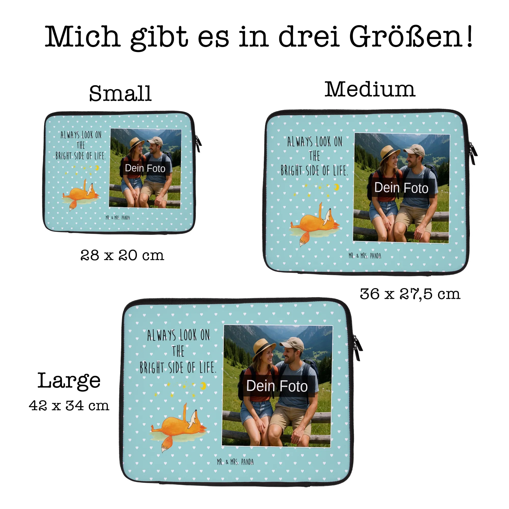 Das perfekte Accessoire für alle, die ein bisschen Persönlichkeit in ihren Alltag bringen möchten: unsere personalisierte Foto Notebook Tasche von Mr. & Mrs. Panda! Mit den großzügigen Maßen von 280 mm x 200 mm x 303 mm ist sie ideal für Laptops oder Notebooks. Hergestellt aus strapazierfähigem, wasserabweisendem Neopren und Kunstfaser, bietet sie optimalen Schutz vor Schmutz, Staub und Kratzern. Die beiden Seiten sind mit den charakteristischen süßen Motiven und Sprüchen von Mr. & Mrs. Panda verziert. Du kannst die Tasche mit deinem eigenen, schönen Foto personalisieren! Achte darauf, dass dein Bild eine hohe Auflösung hat, sodass das Druckergebnis klar und deutlich wird. Die praktische Gestaltung mit robustem Reißverschluss gewährt schnellen Zugriff von beiden Seiten. Diese Tasche ist leicht, strapazierfähig und bestens für unterwegs geeignet. Viel Spaß beim Individualisieren und trage dein praktisches Stück Gemütlichkeit überall mit dir!
