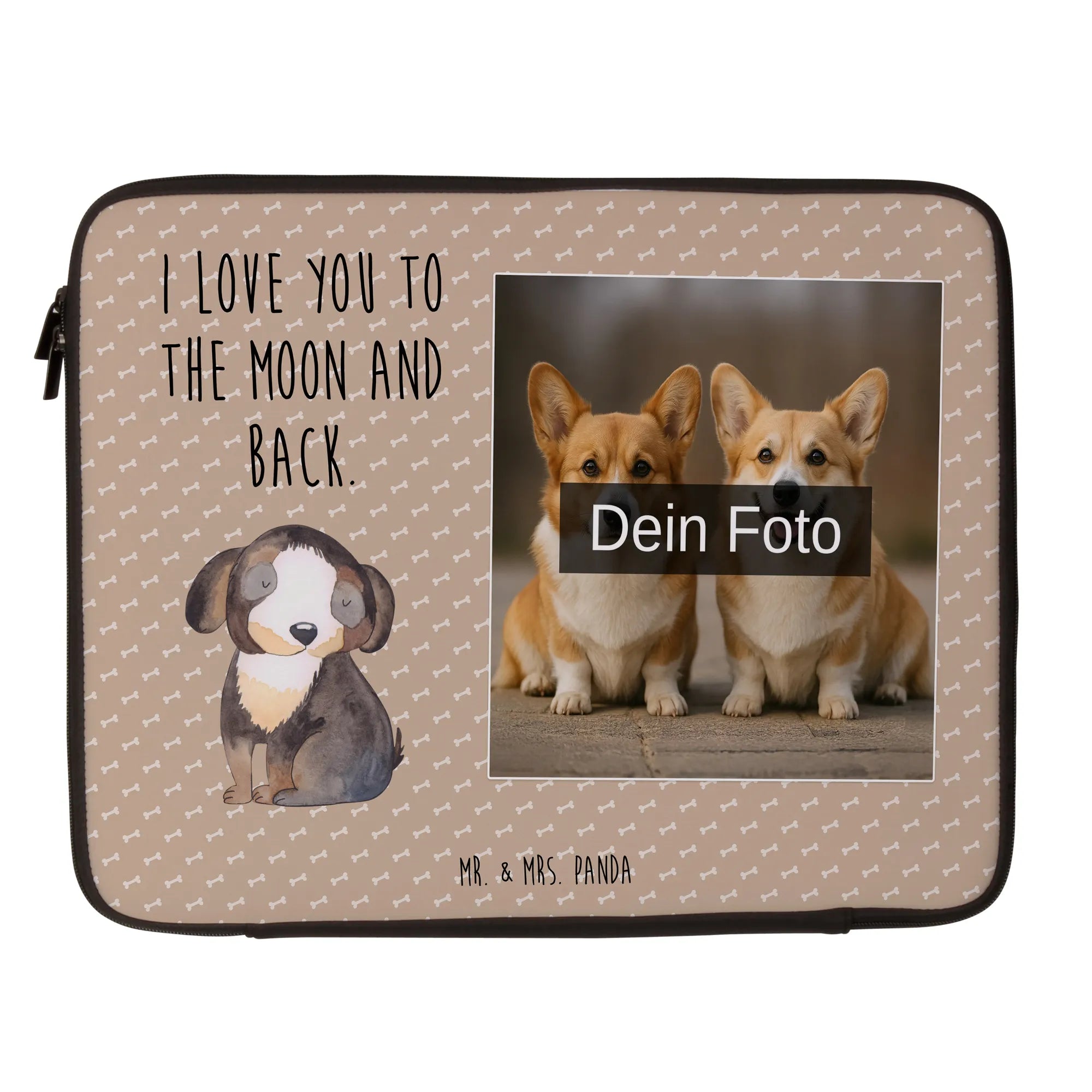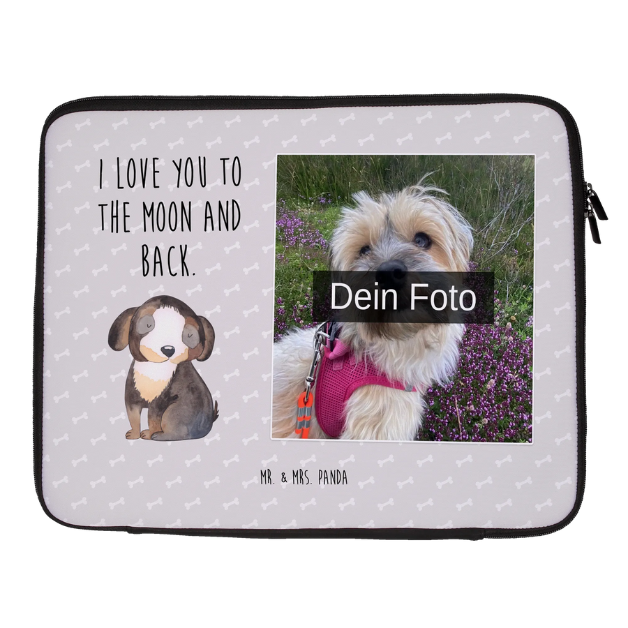 Personalisierte Foto Notebook Tasche Hund Entspannen - 20 x 28 cm - Grau Pastell