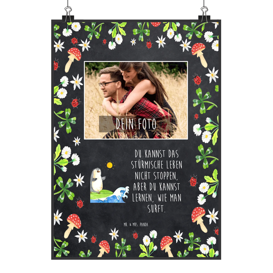 Personalized Photo Poster Penguin surfer - DIN A1 - Chalkboard