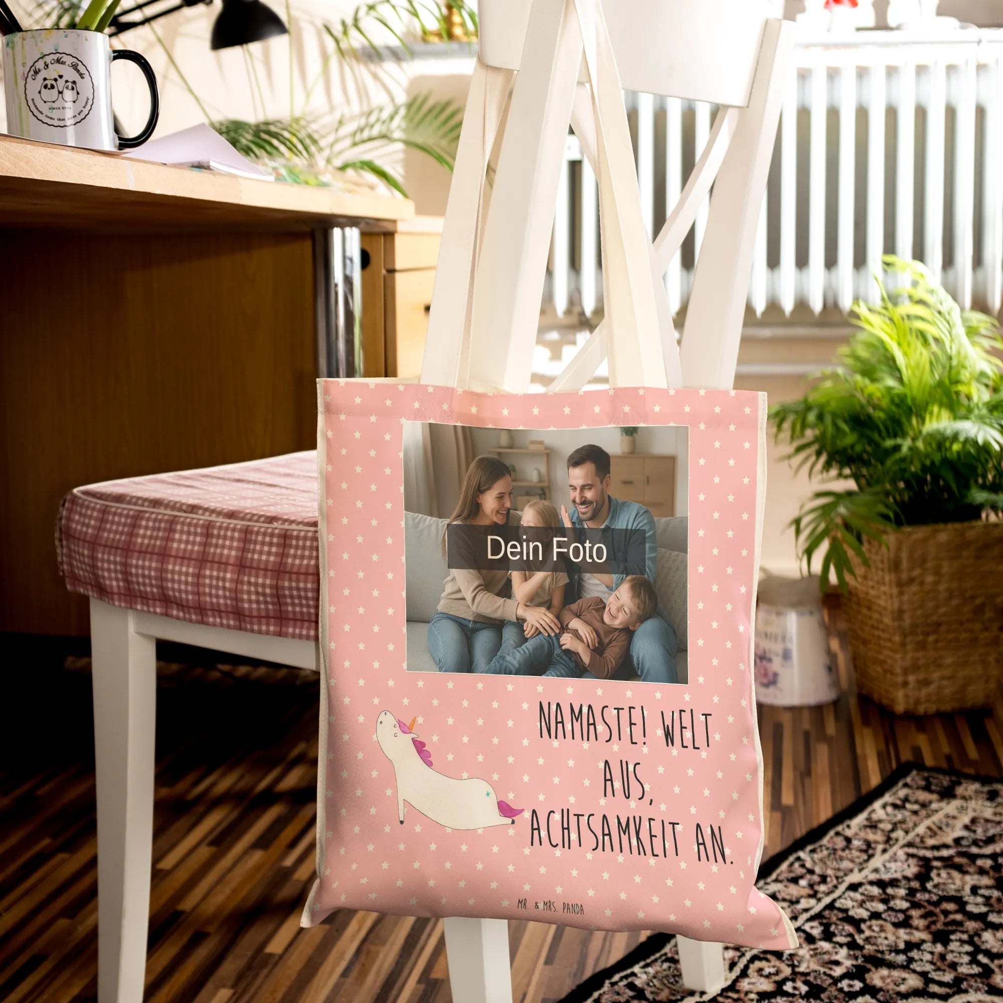 Personalisierte Foto Einkaufstasche Einhorn Yoga