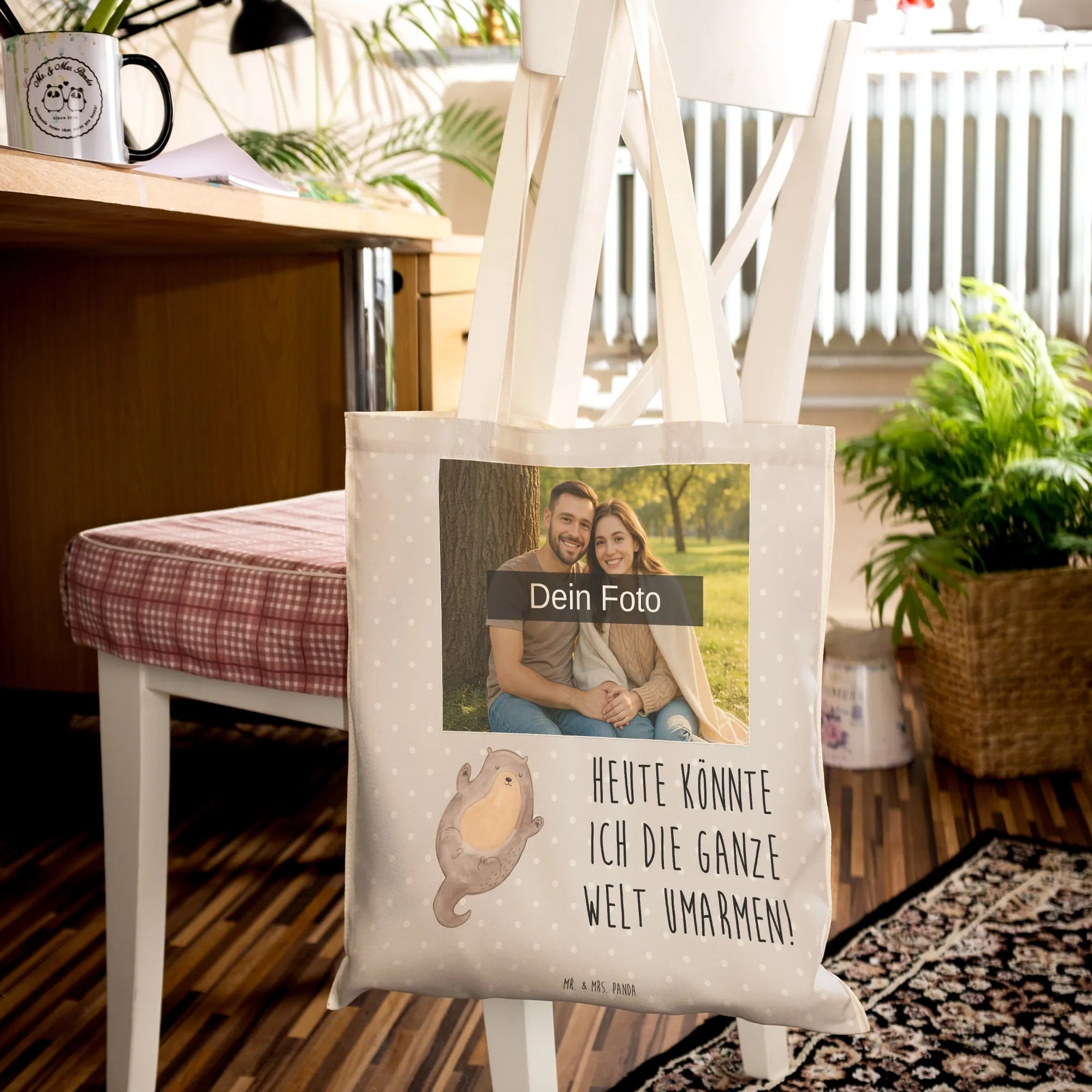 Personalisierte Foto Einkaufstasche Otter Umarmen