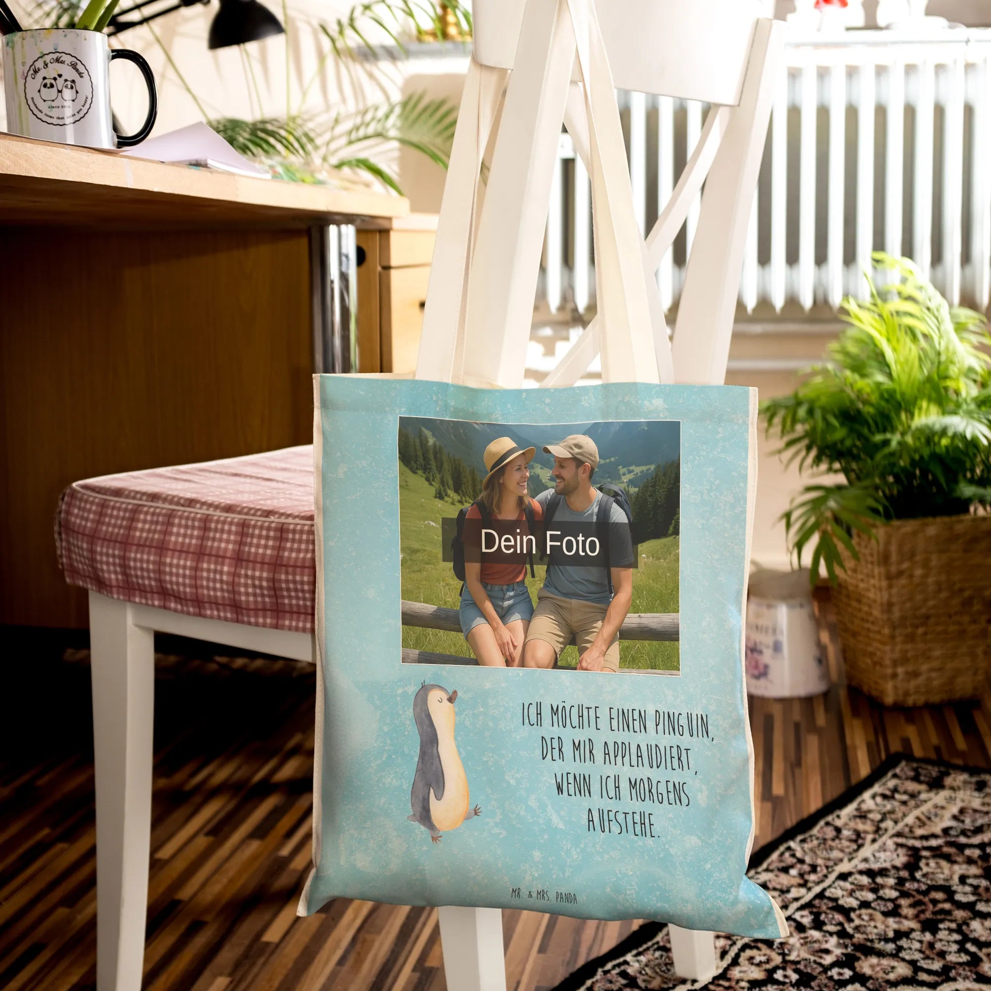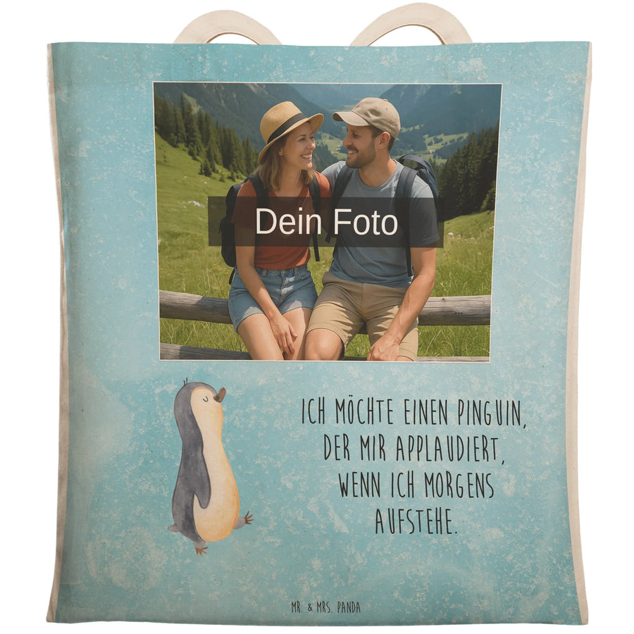 Personalisierte Foto Einkaufstasche Pinguin marschieren
