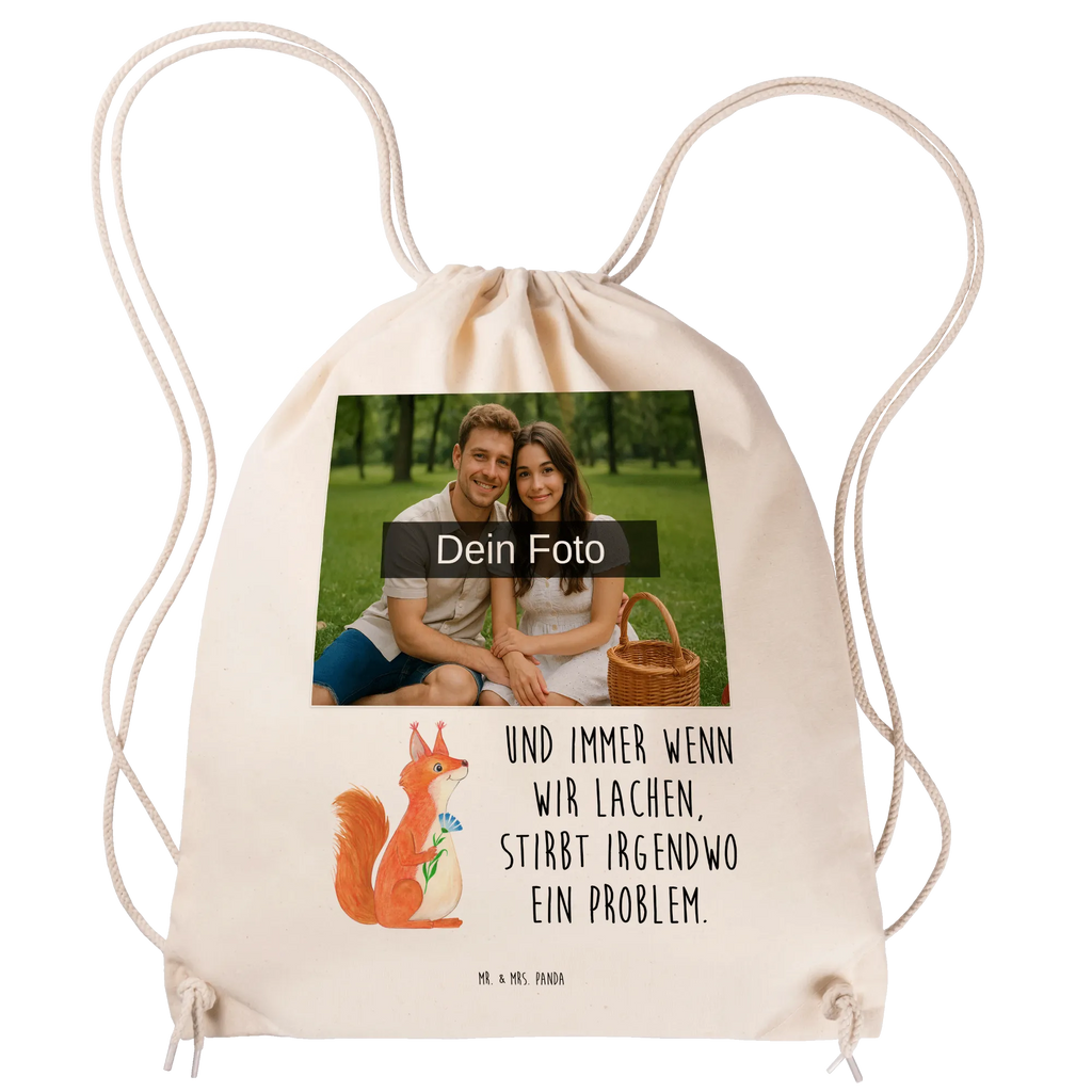 The personalized photo sports bag from Mr. & Mrs. Panda combines style and individuality in a practical accessory. Thanks to the option to create your unique desired photo print, you'll be the center of attention, whether at the gym, school, or while traveling. The bag impresses with its durable, soft cotton construction and offers plenty of storage space with its dimensions of 420x380. Make a statement with vibrant colors and cute designs created with love by Mr. & Mrs. Panda just for you. Washable at 30°C, the drawstring bag always stays fresh and clean.