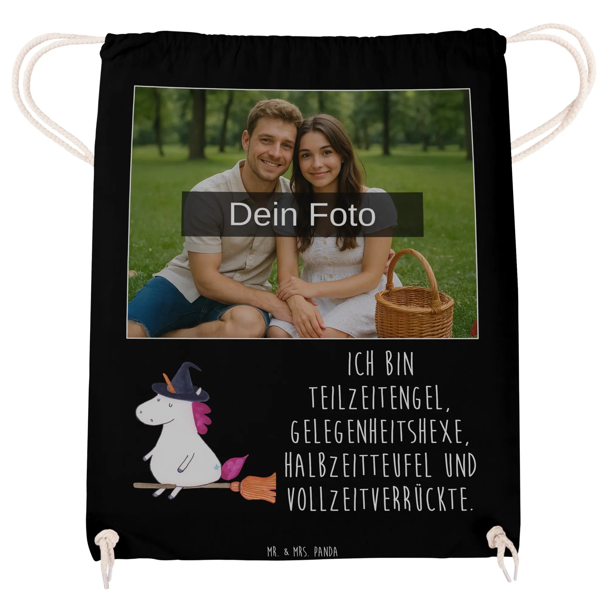 Personalisierter Foto Sportbeutel Einhorn Hexe - Schwarz