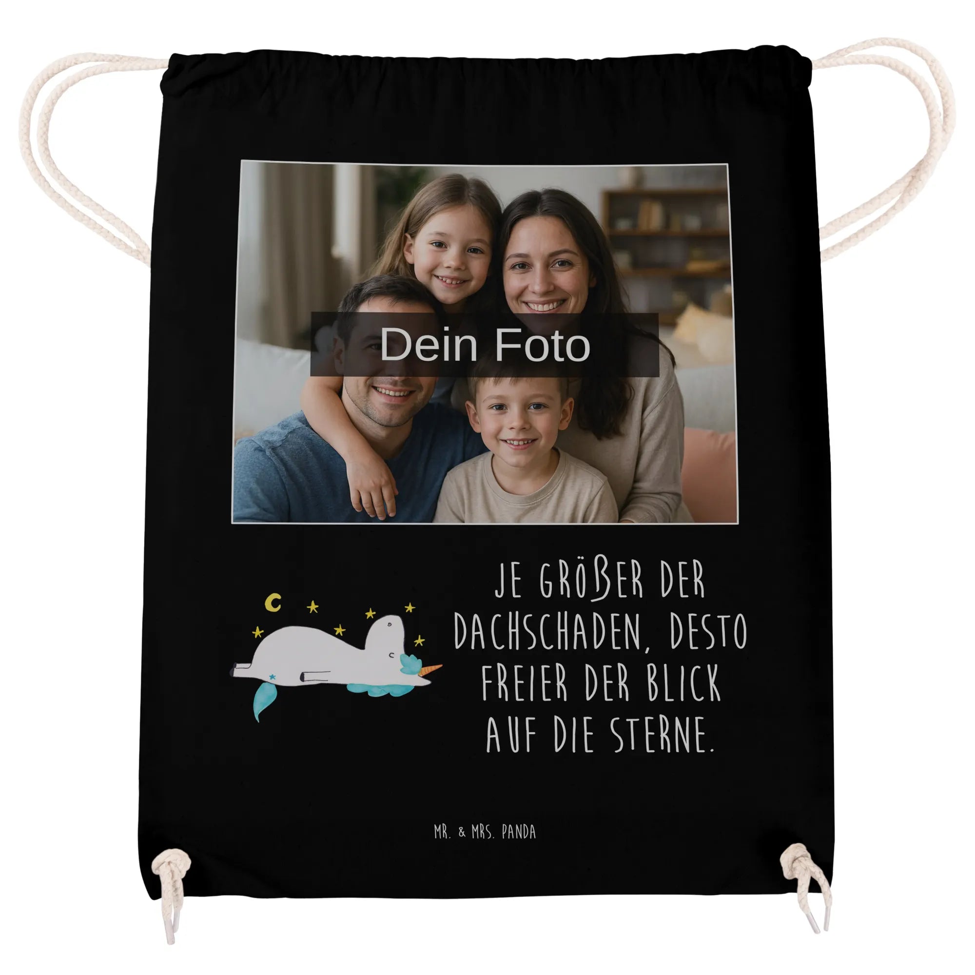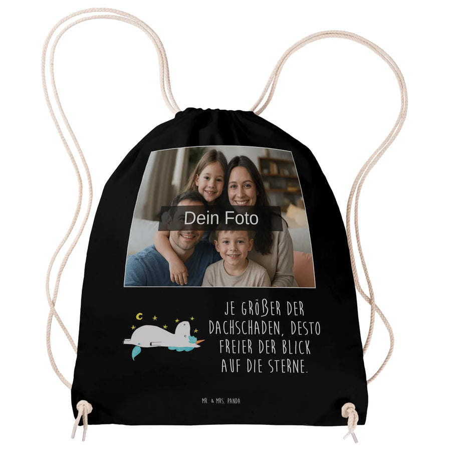 Personalisierter Foto Sportbeutel Einhorn Sternenhimmel - Schwarz
