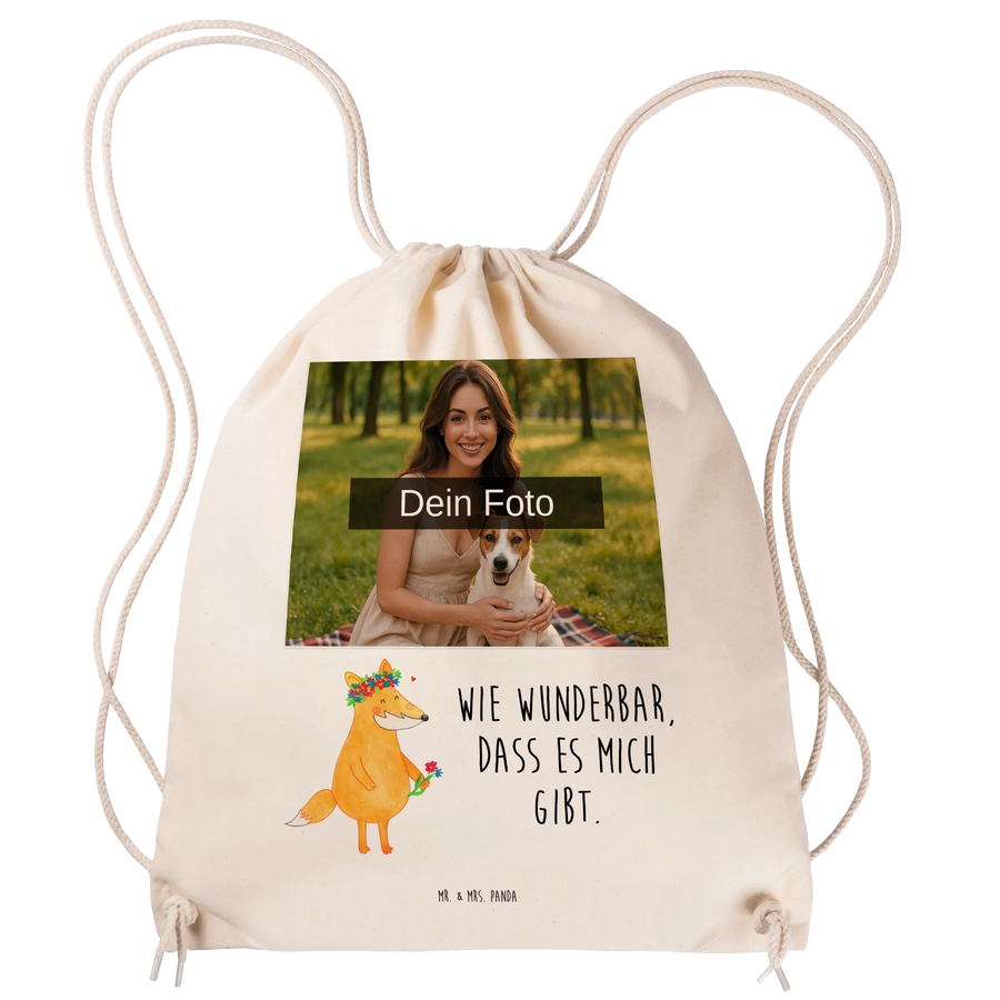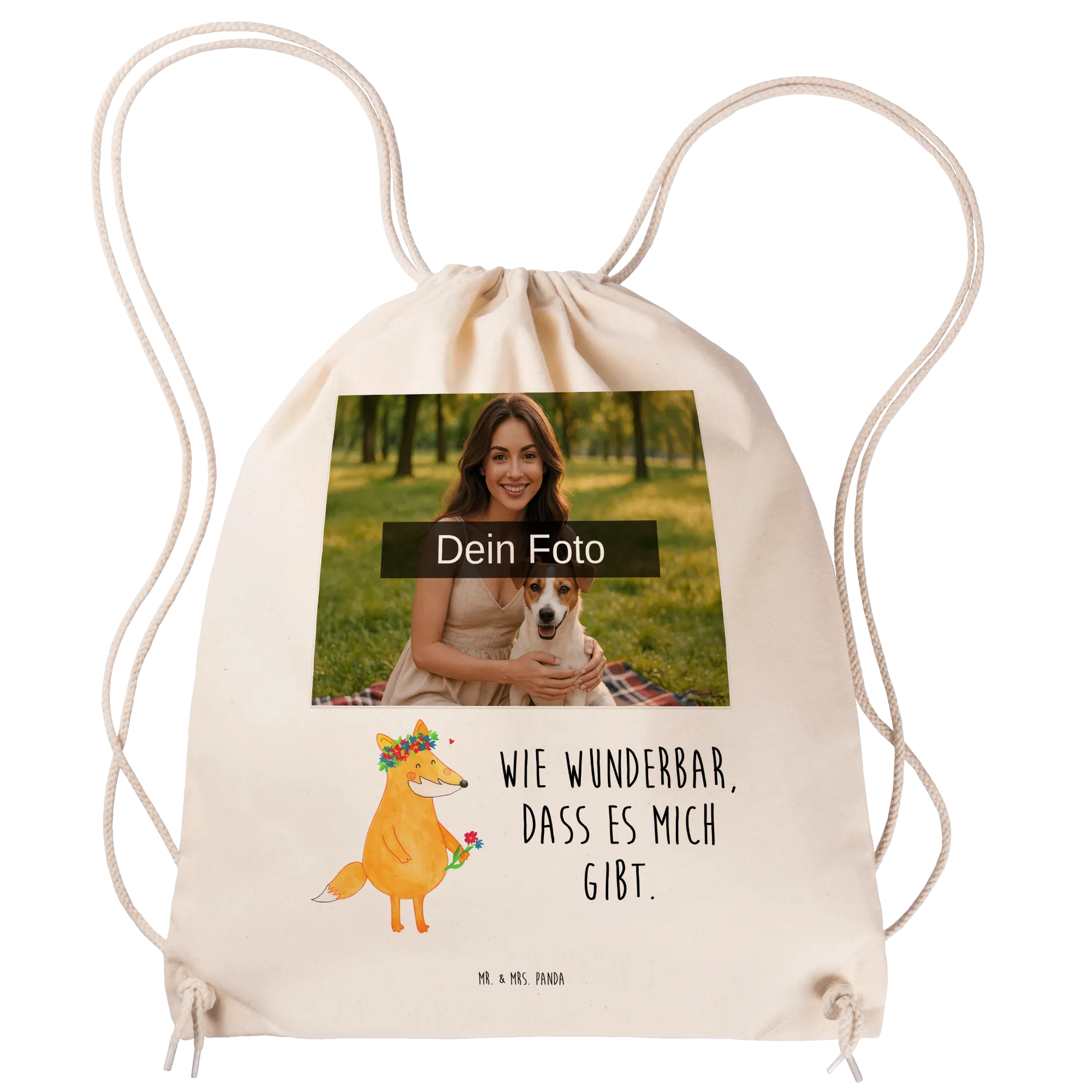 Personalisierter Foto Sportbeutel Fuchs Blumen - Transparent