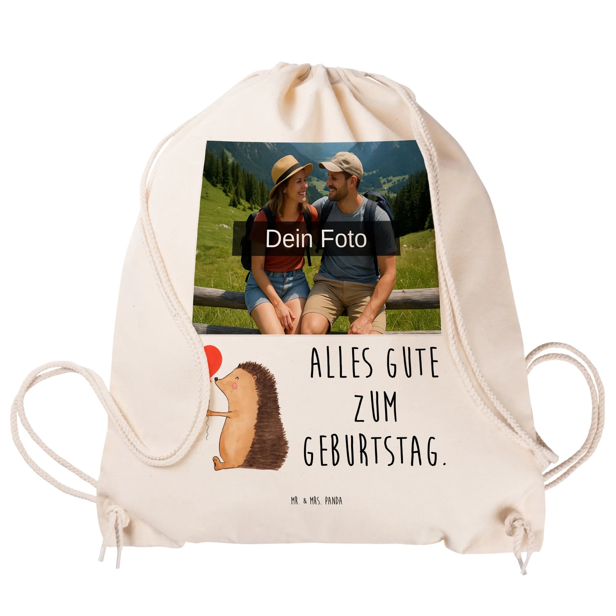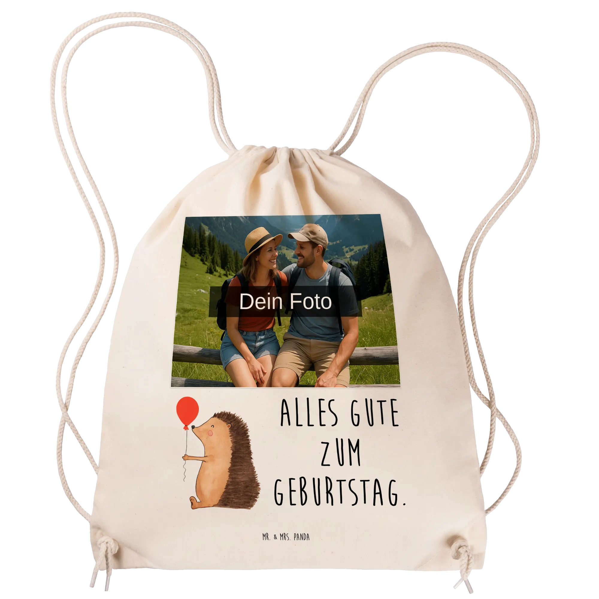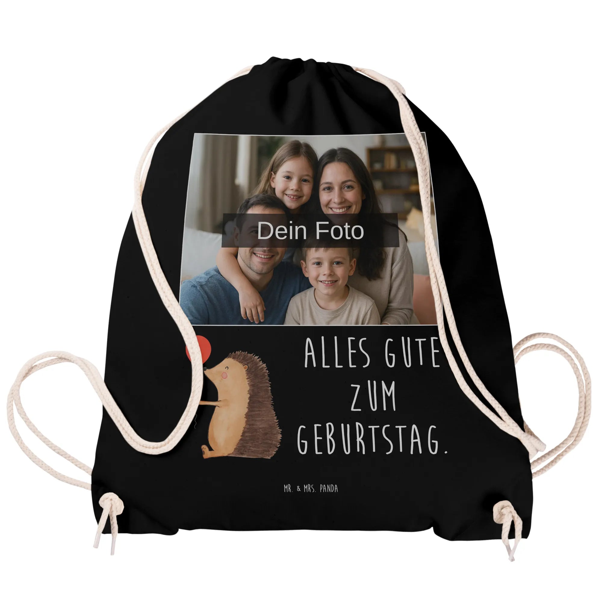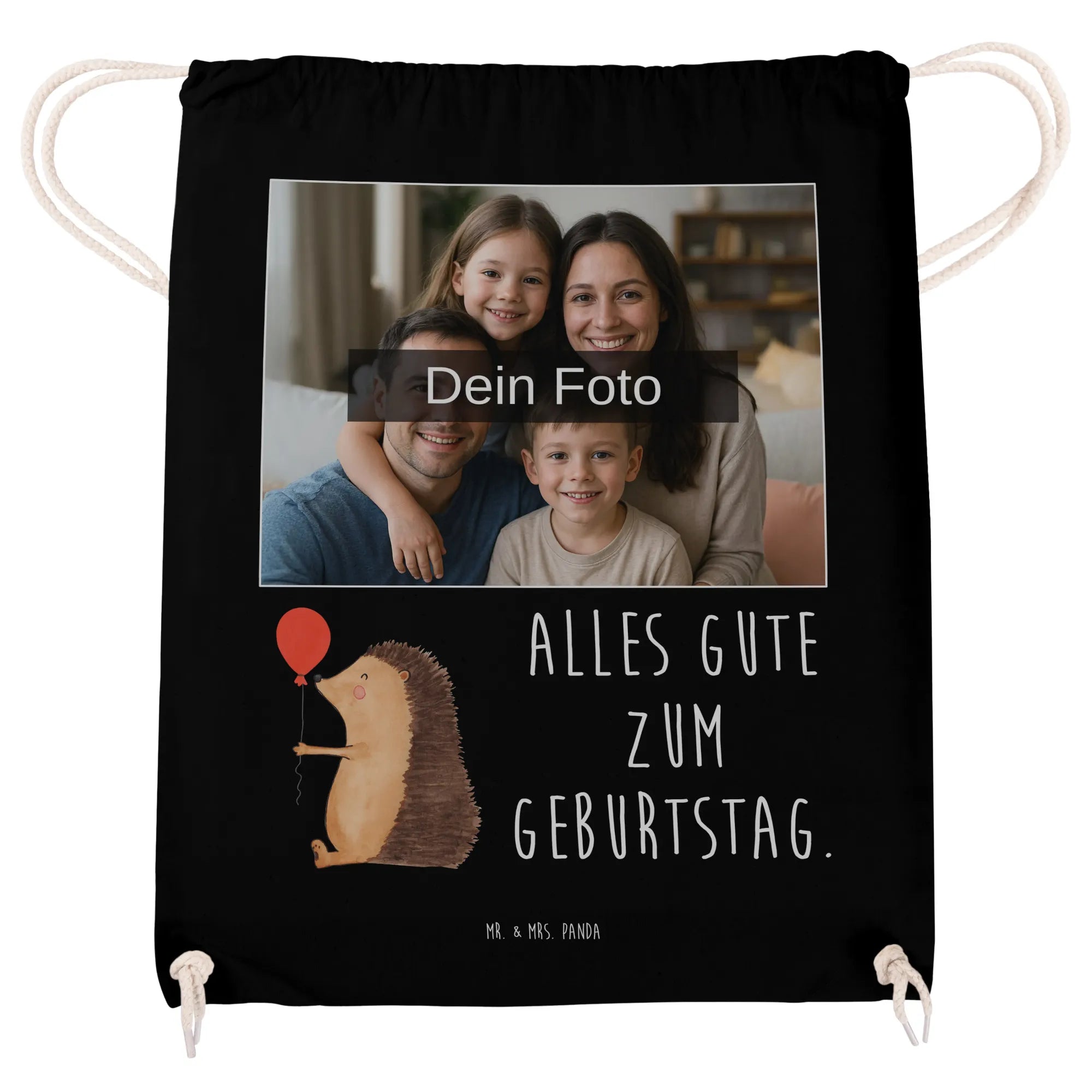 Personalisierter Foto Sportbeutel Igel Luftballon - Schwarz