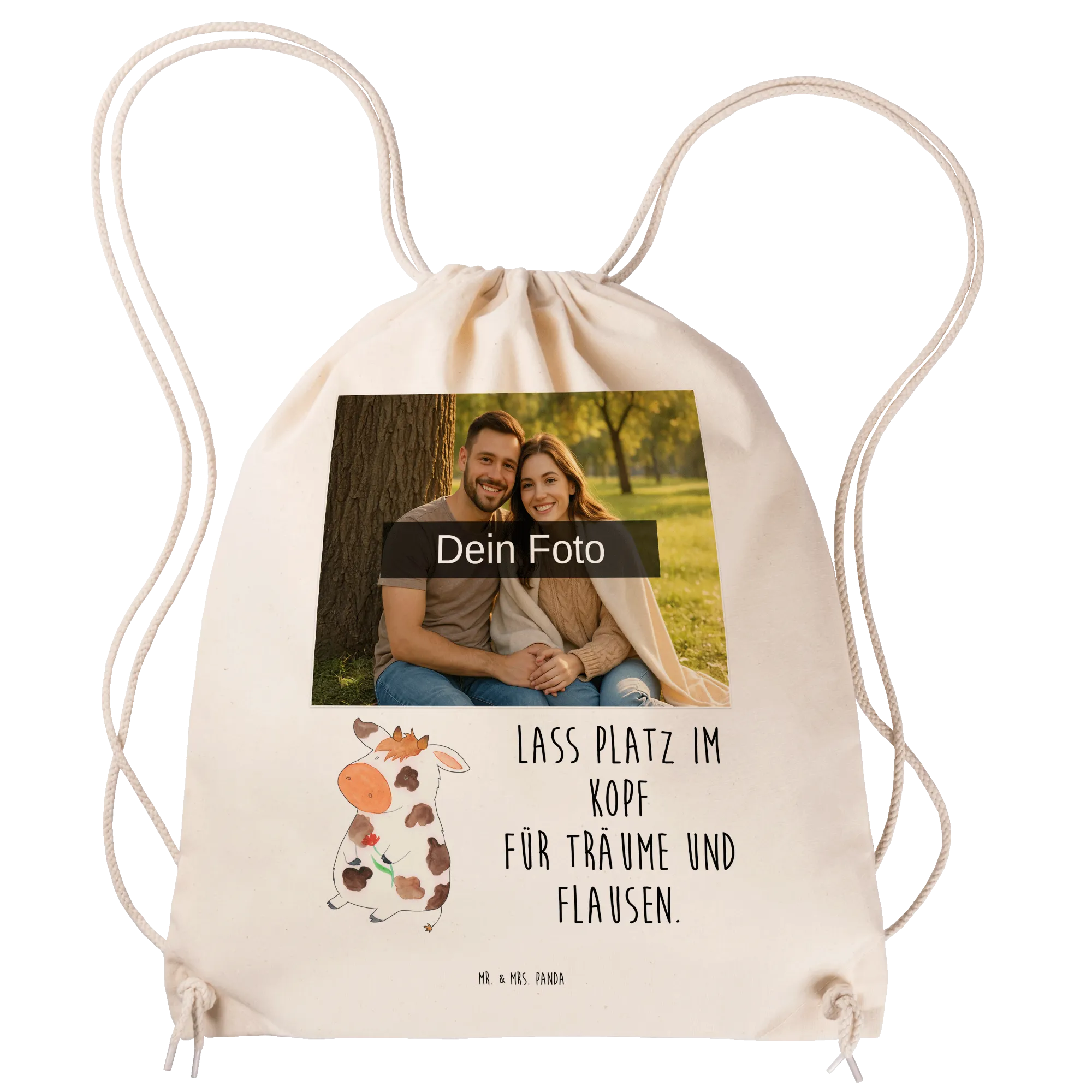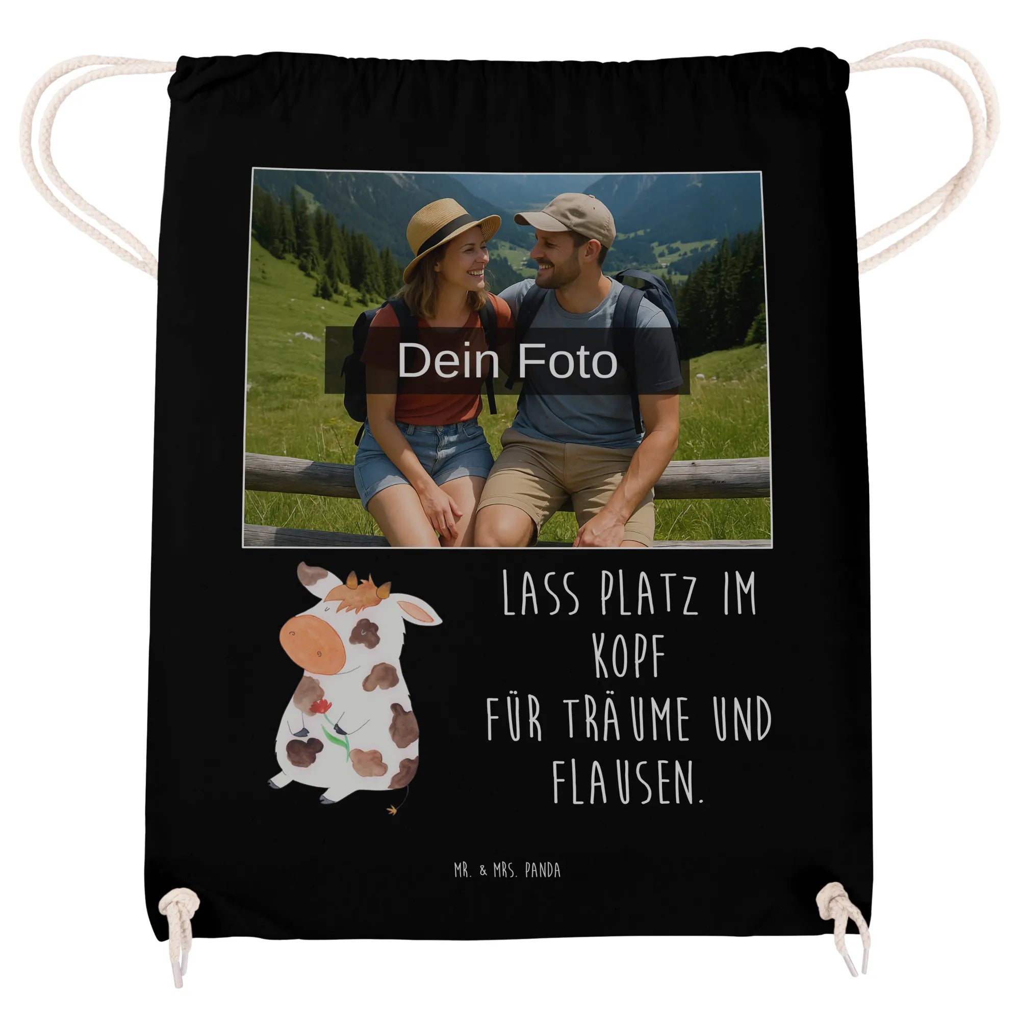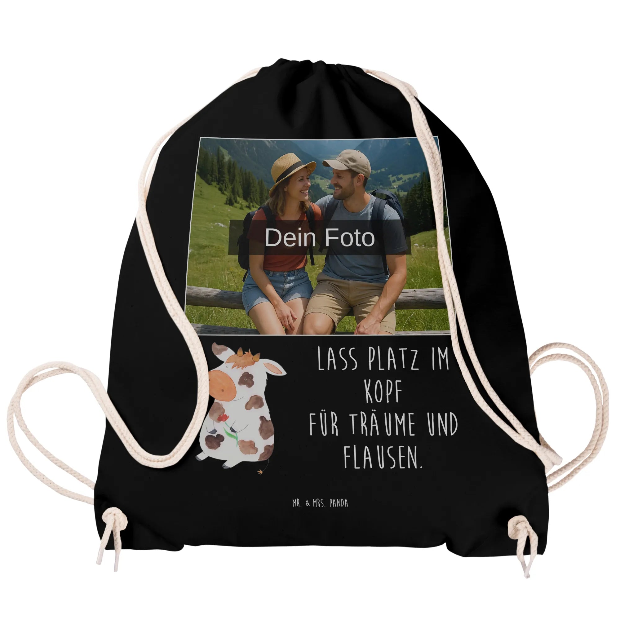 Personalisierter Foto Sportbeutel Kuh - Schwarz