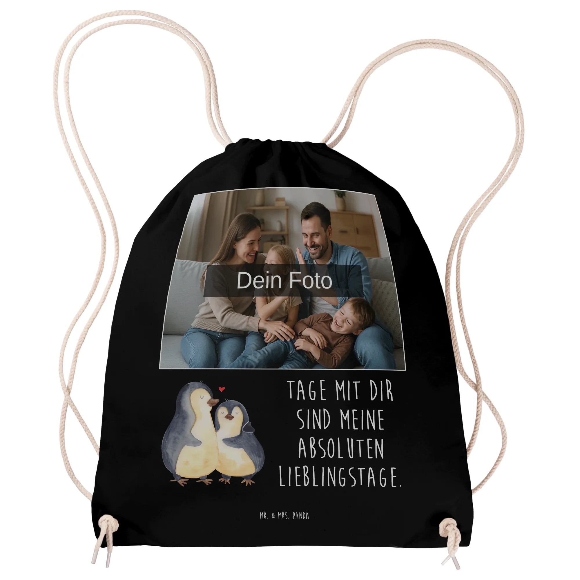 Personalisierter Foto Sportbeutel Pinguin umarmen – Mr. & Mrs. Panda