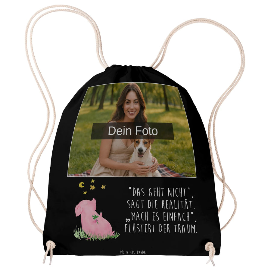 Personalisierter Foto Sportbeutel Schwein Glück - Schwarz