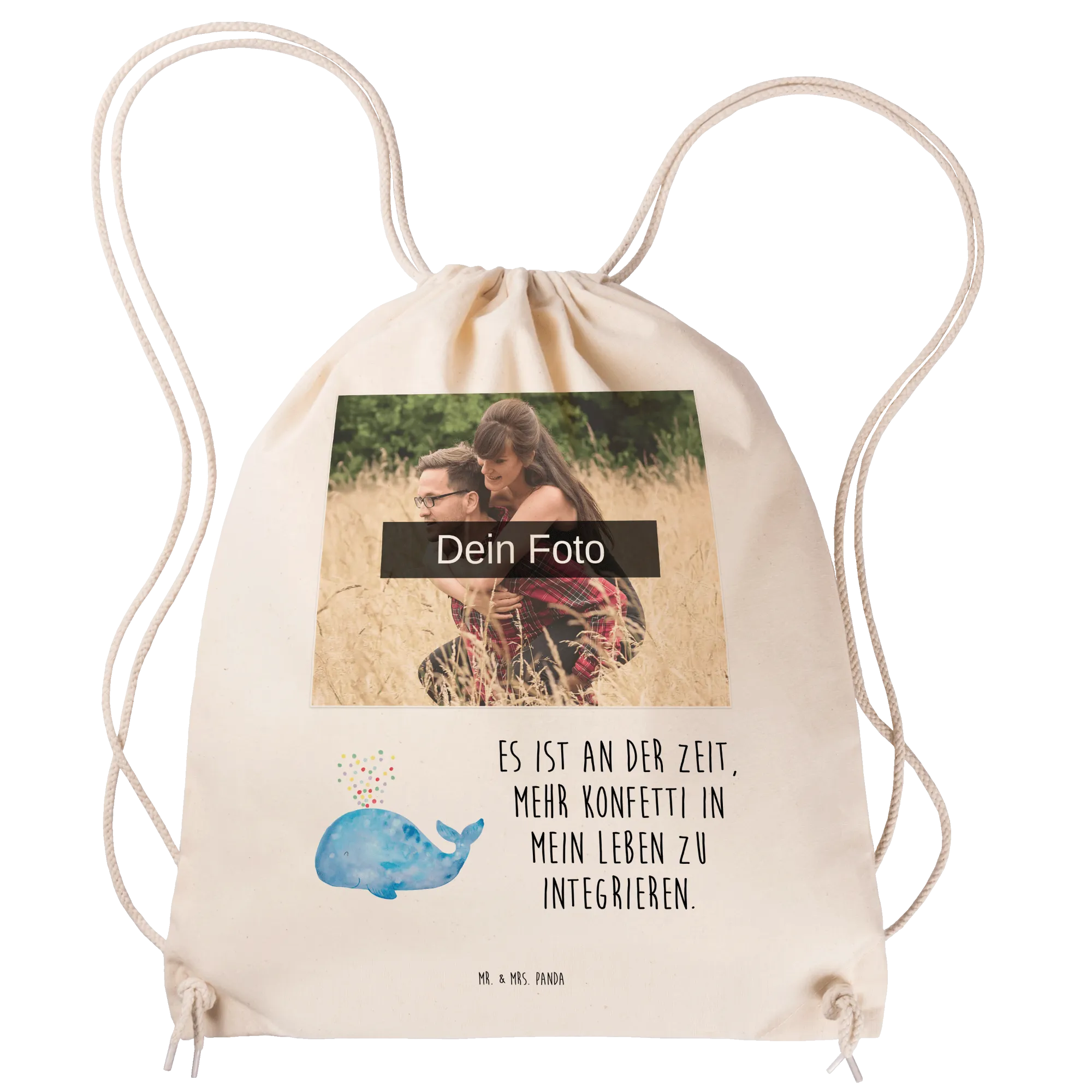 Personalisierter Foto Sportbeutel Wal Konfetti - Transparent