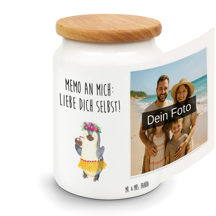 Personalisierte Foto Vorratsdose Pinguin Kokosnuss