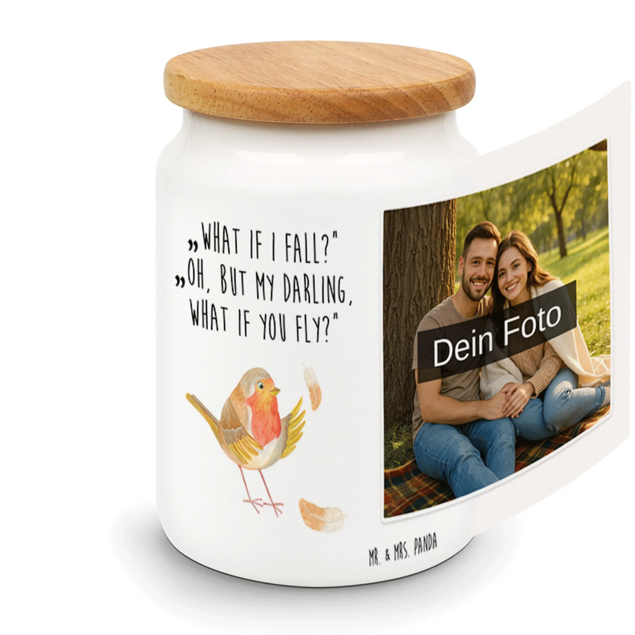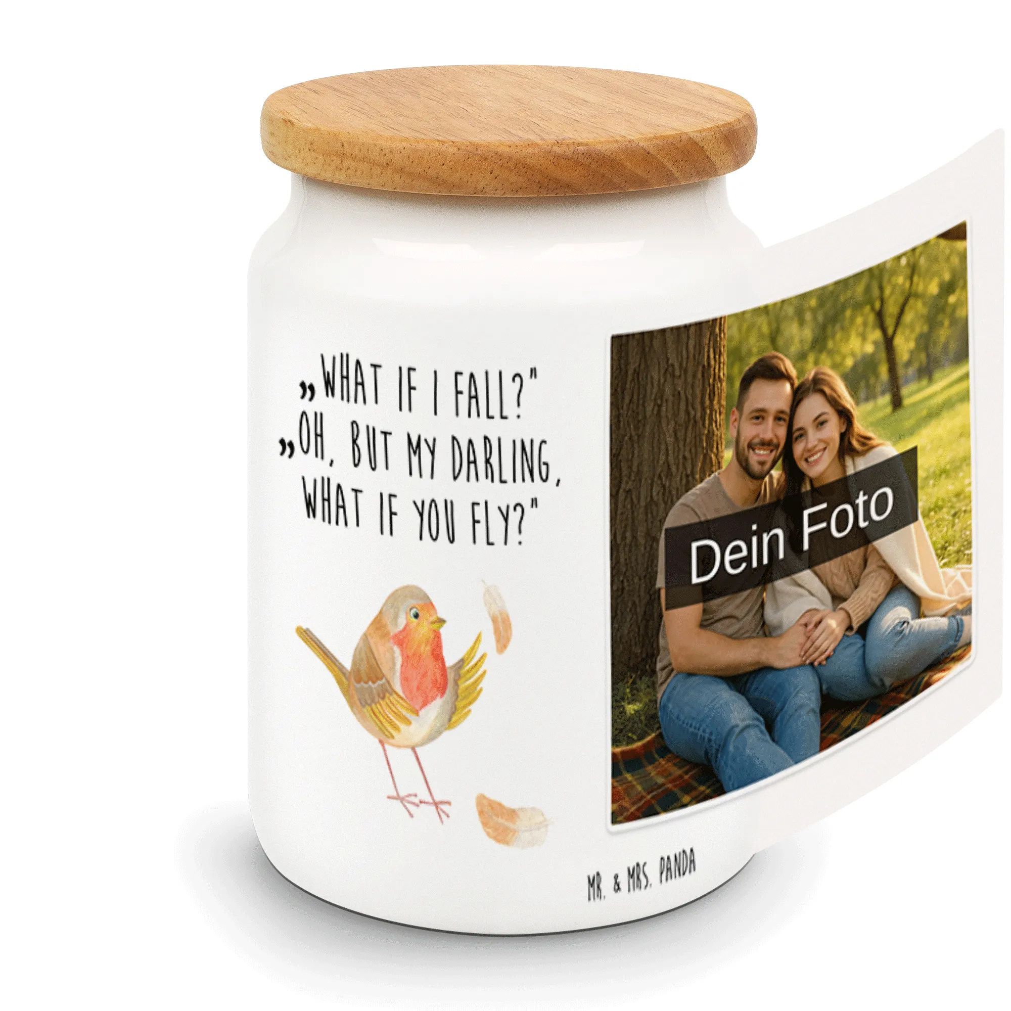 Personalisierte Foto Vorratsdose Rotkehlchen Federn