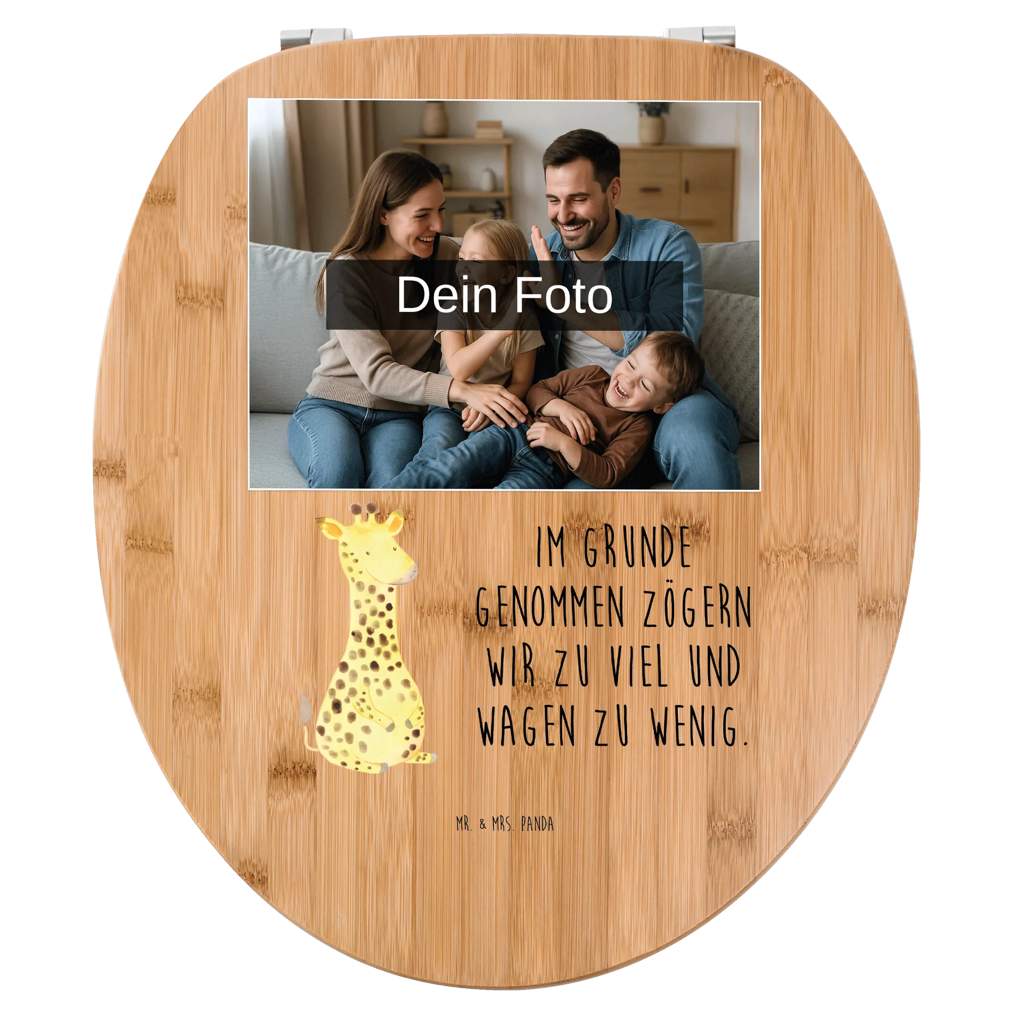 Personalisierter Foto WC Sitz Motiv Giraffe Zufrieden - Bambus