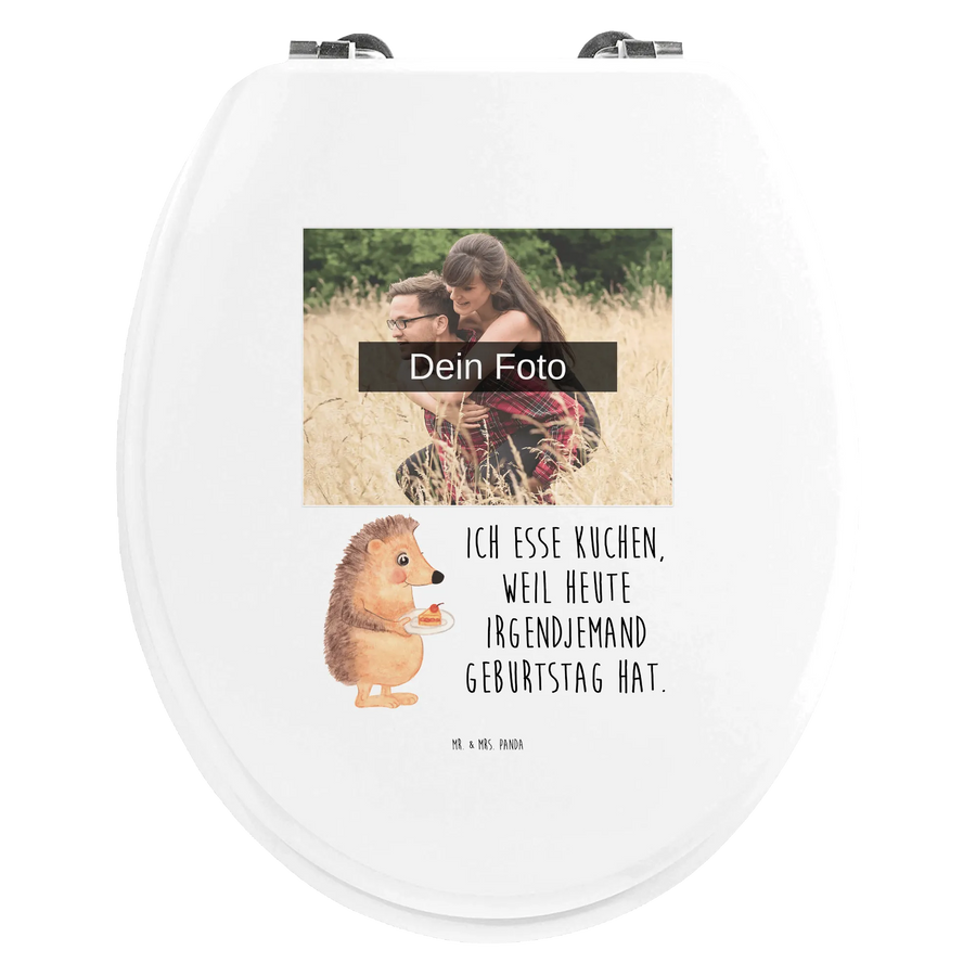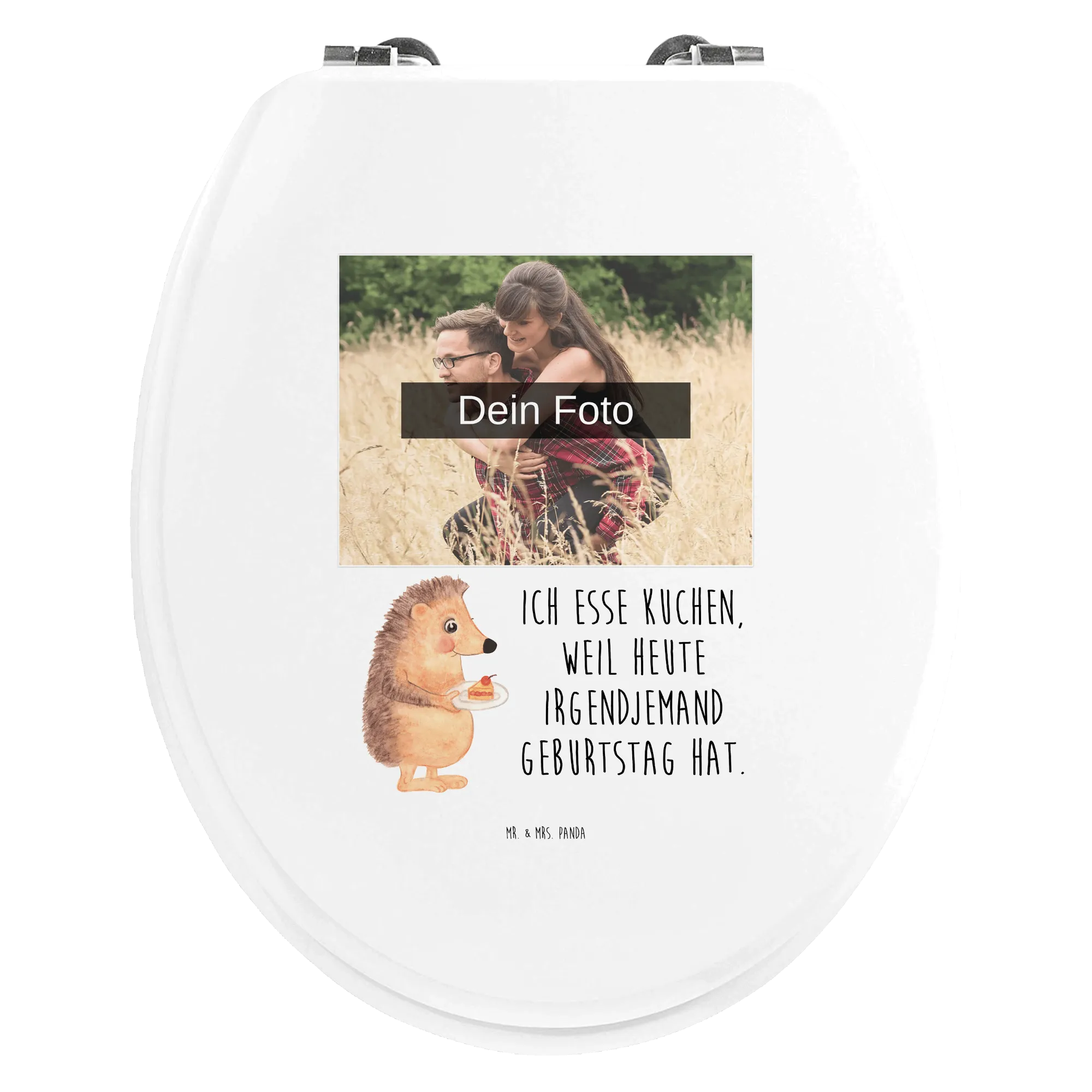Personalisierter Foto WC Sitz Motiv Igel Kuchenstück - Hartfaser Holzkern Weiß