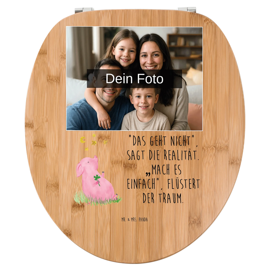 Personalisierter Foto WC Sitz Motiv Schwein Glück - Bambus