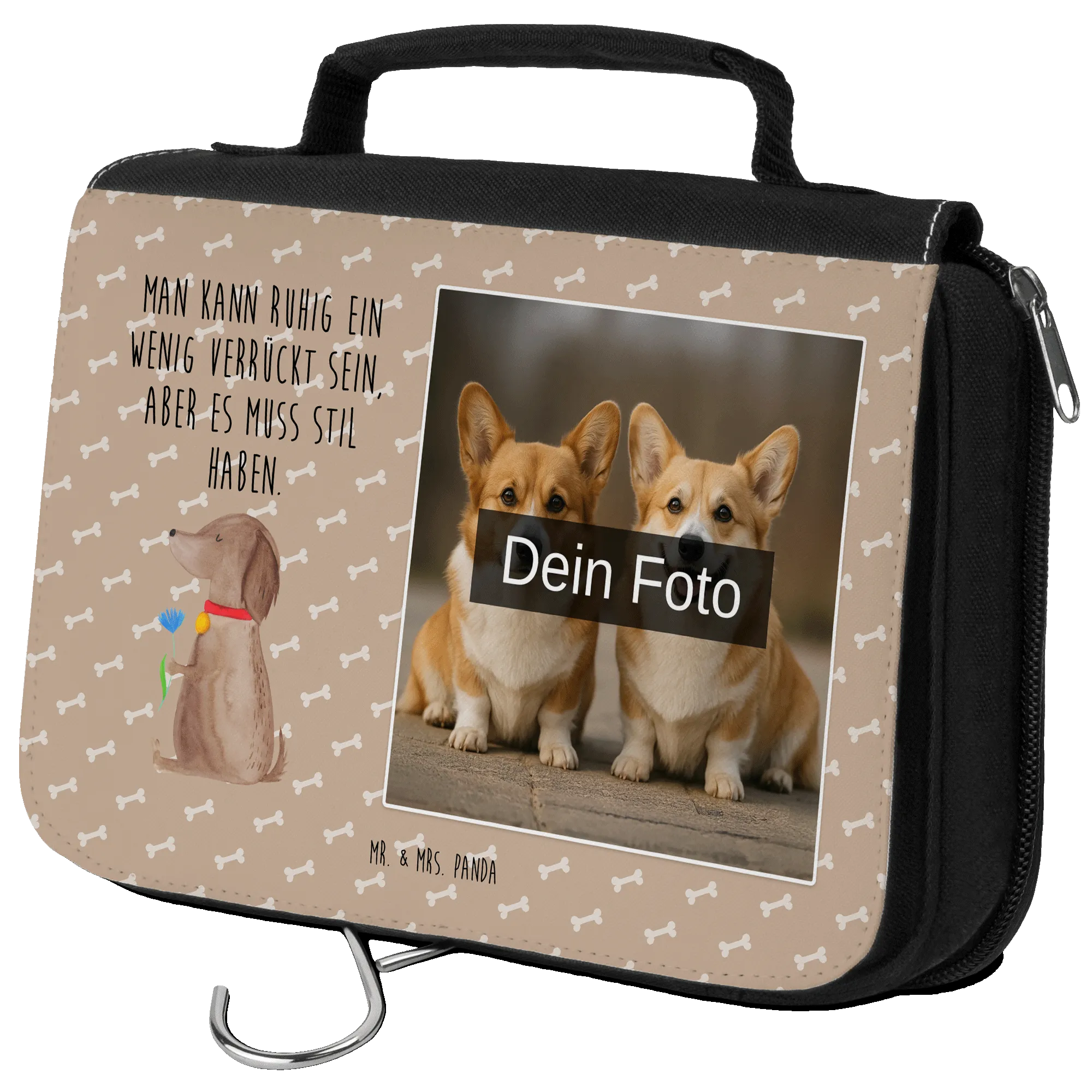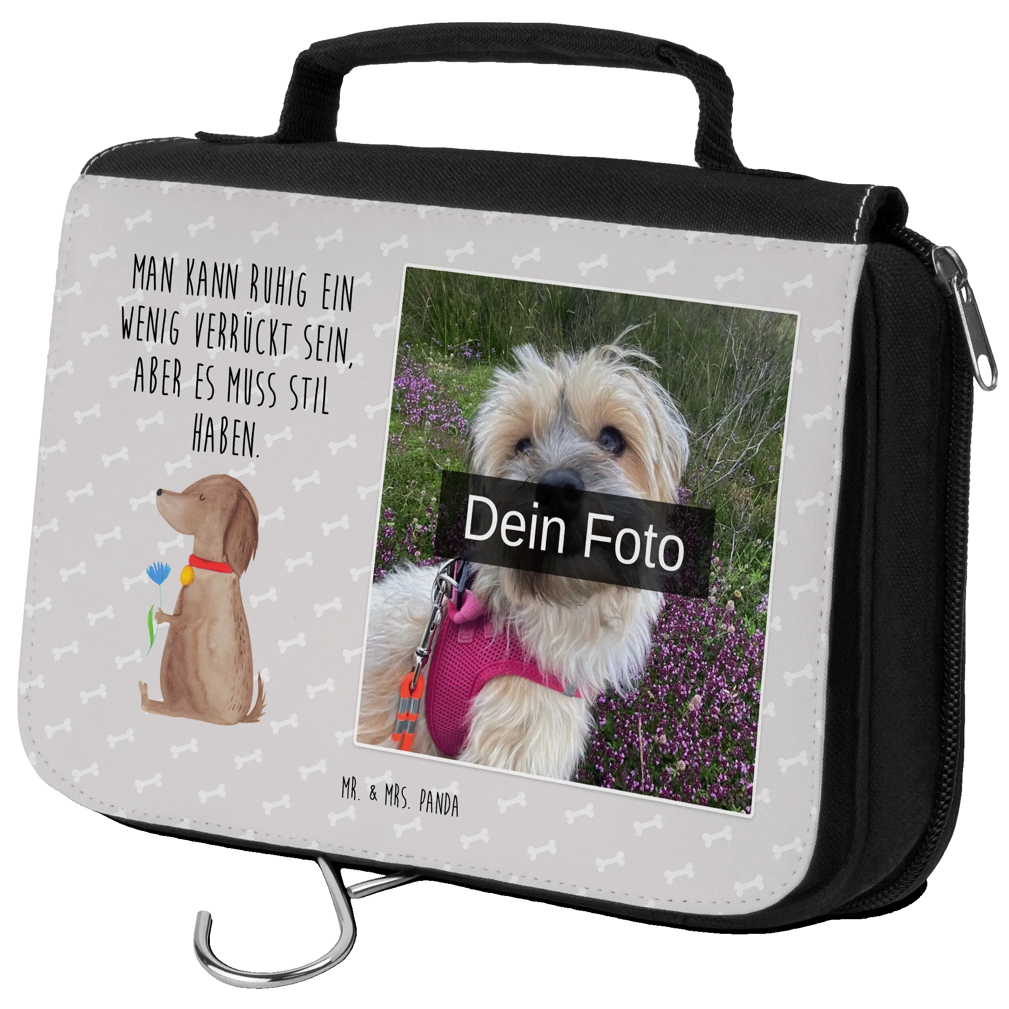 Personalisierter Foto Kulturbeutel Hund Blume - Grau Pastell