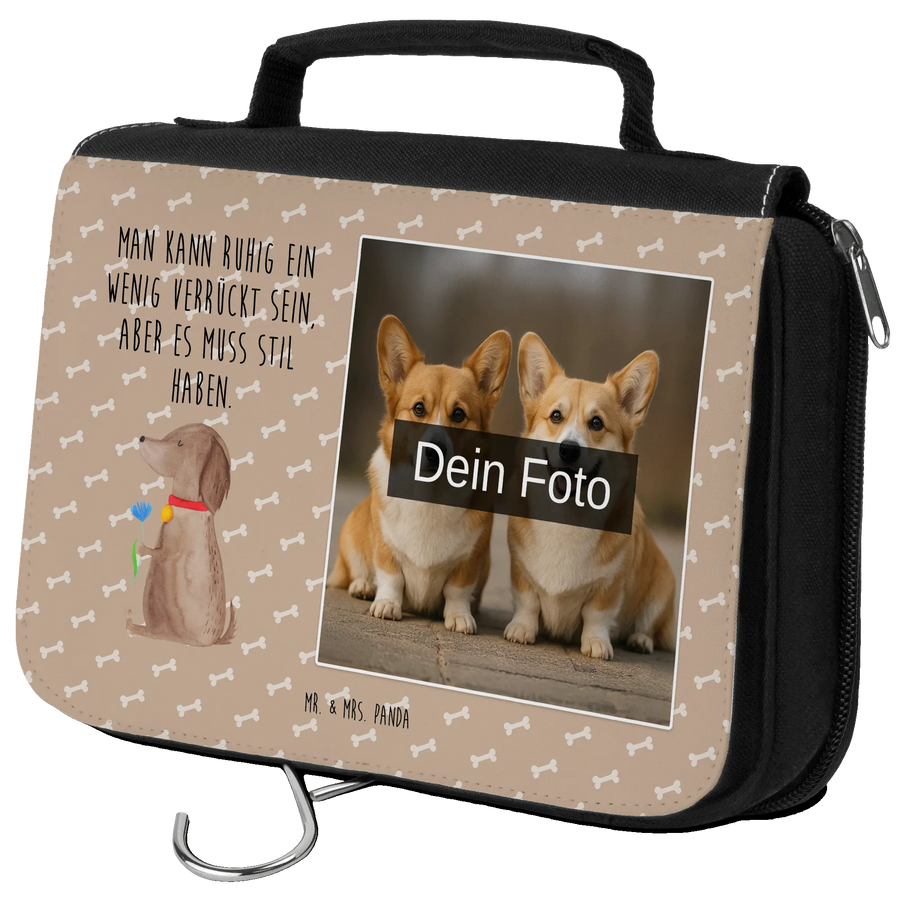 Personalisierter Foto Kulturbeutel Hund Blume - Hundeglück