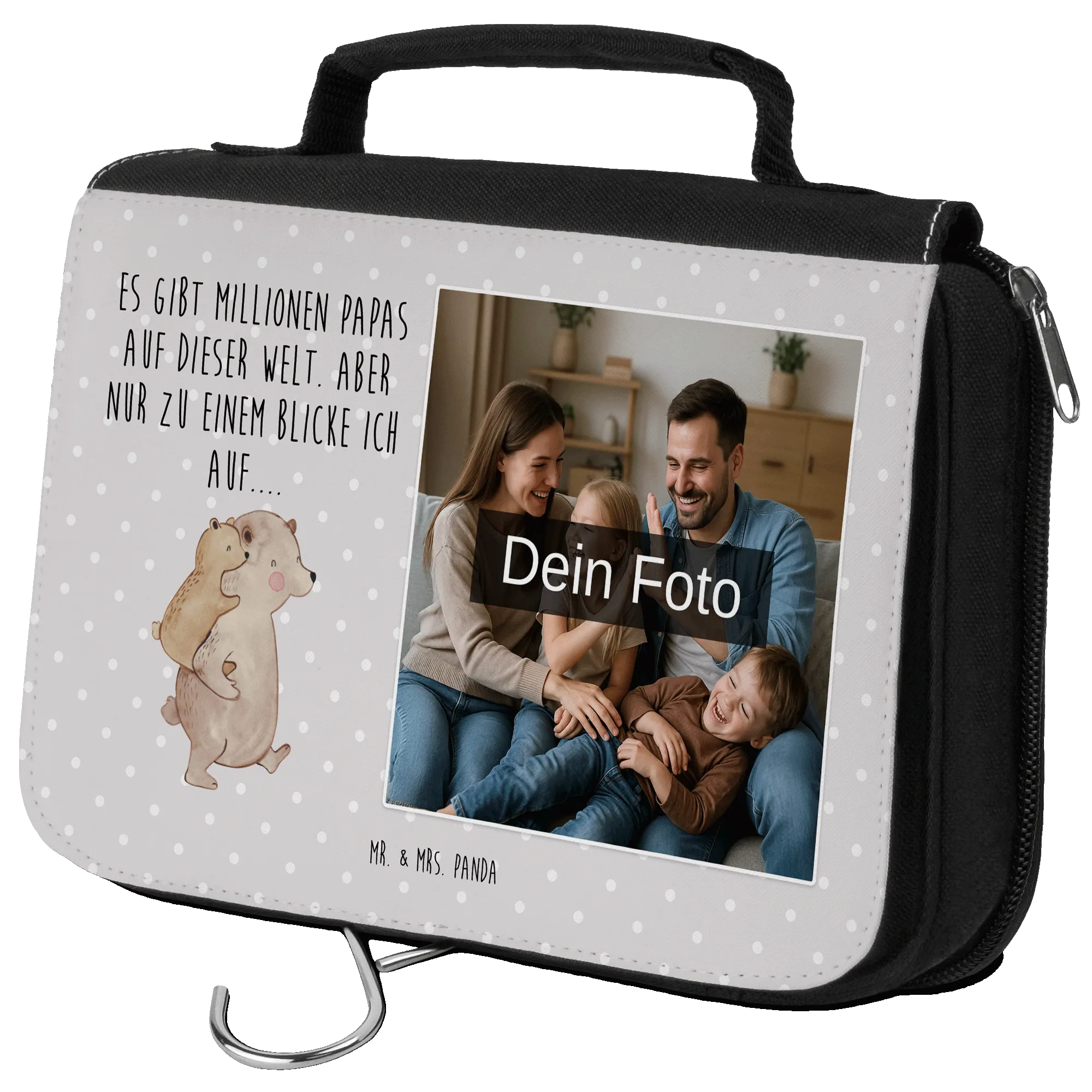 Personalisierter Foto Kulturbeutel Papa Bär - Grau Pastell