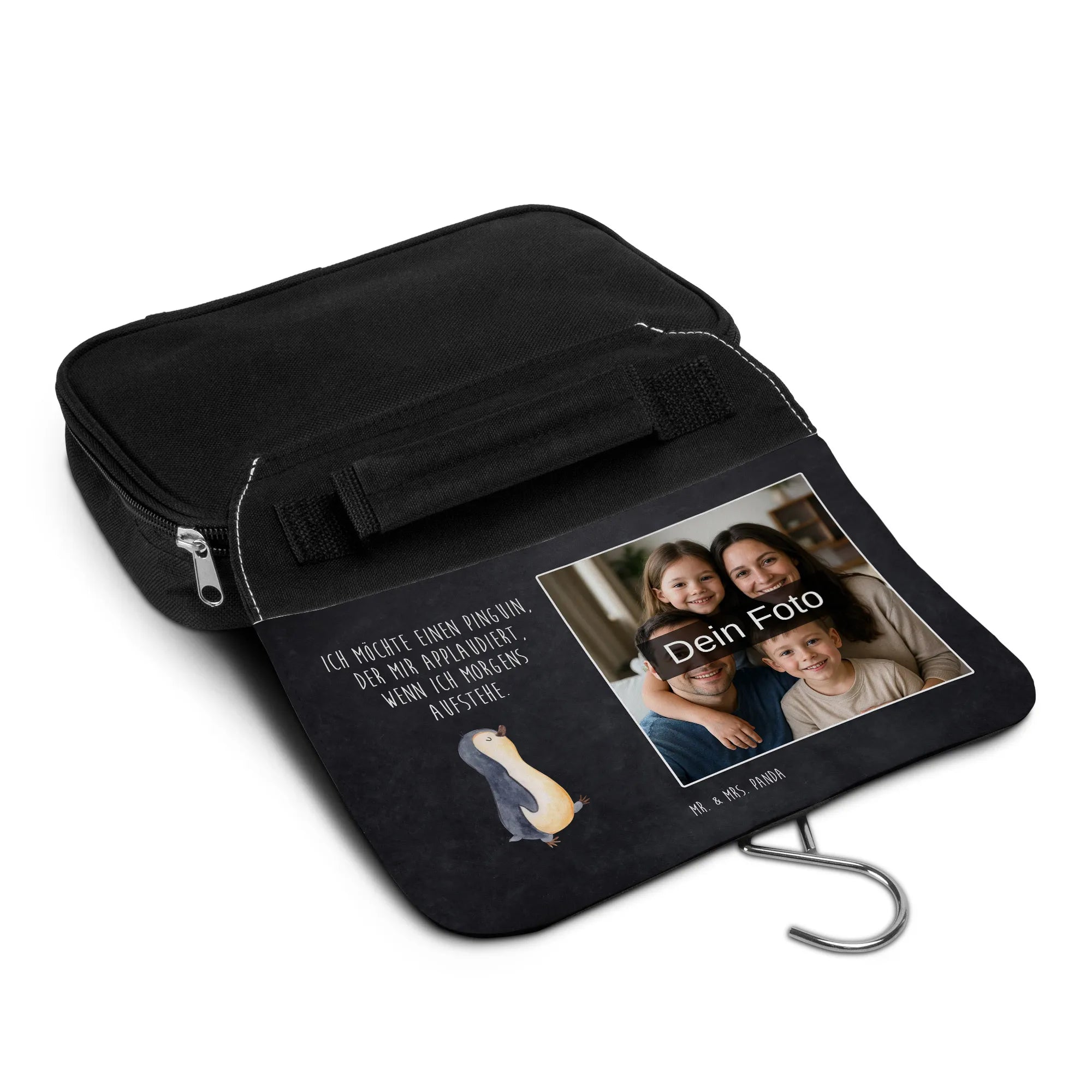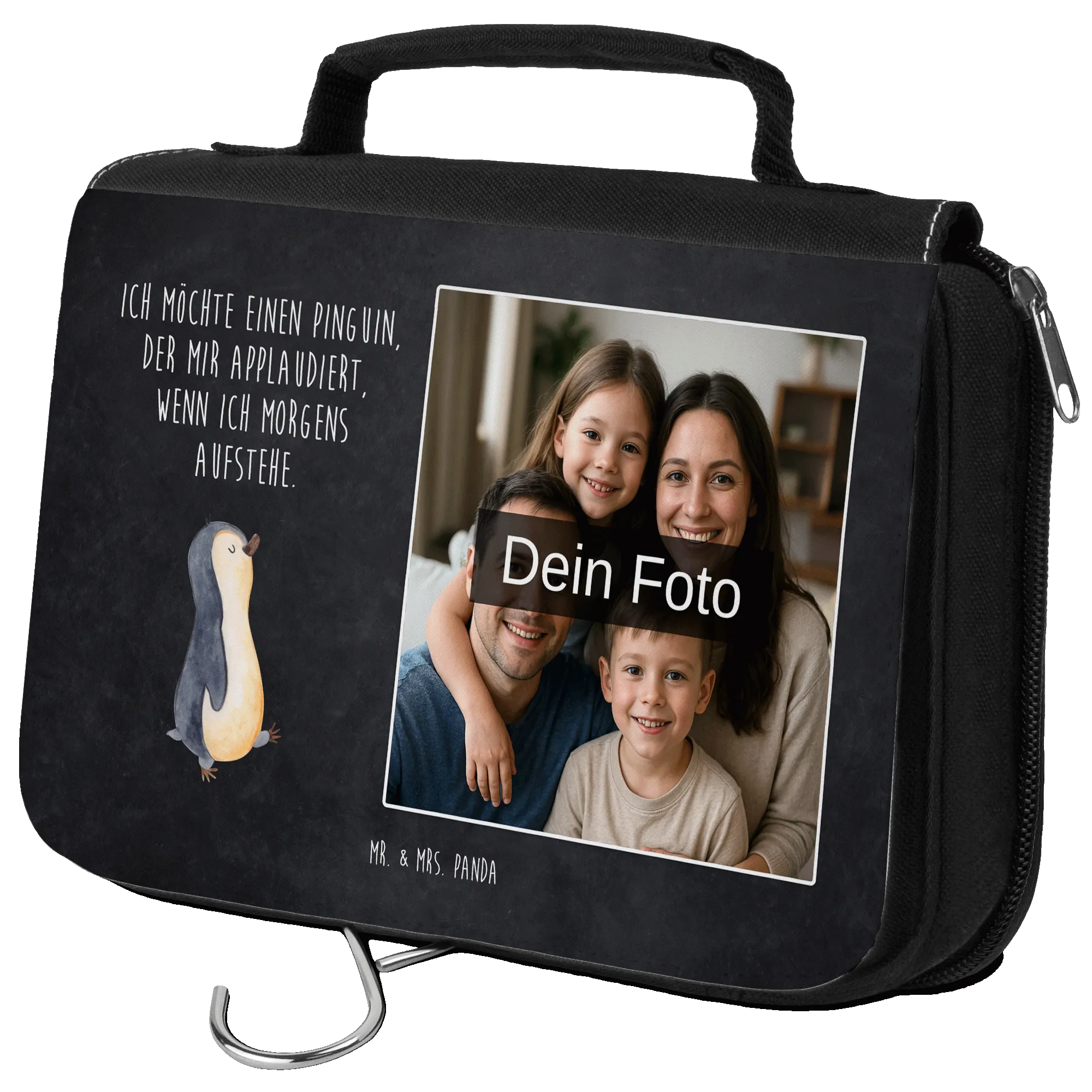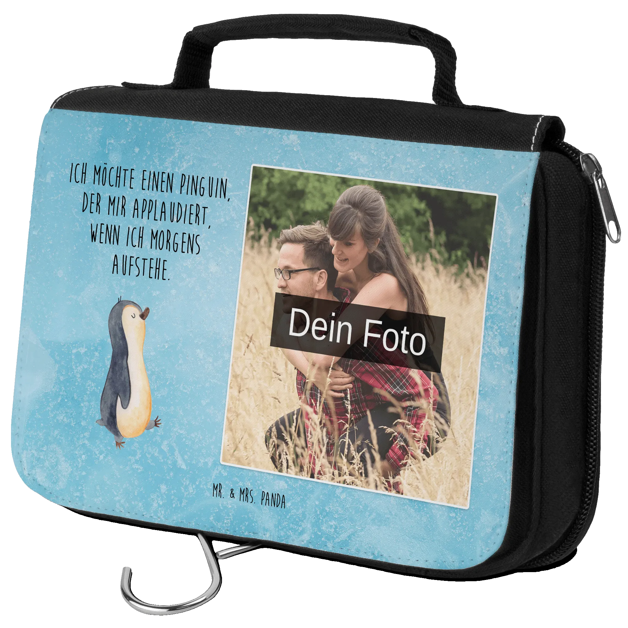 Personalisierter Foto Kulturbeutel Pinguin marschieren - Eisblau