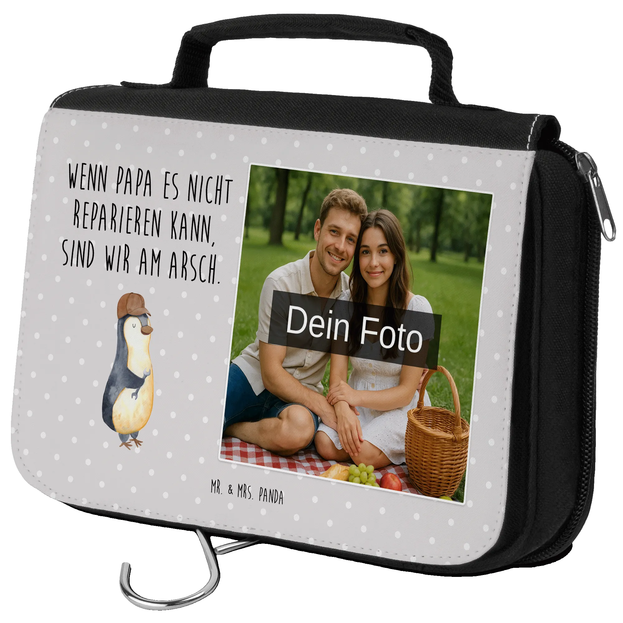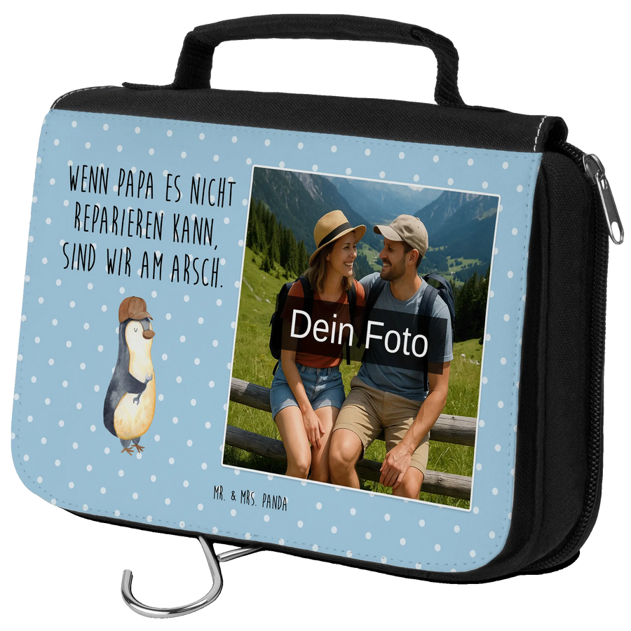 Personalisierter Foto Kulturbeutel Wenn Papa es nicht reparieren kann, sind wir am Arsch - Blau Pastell
