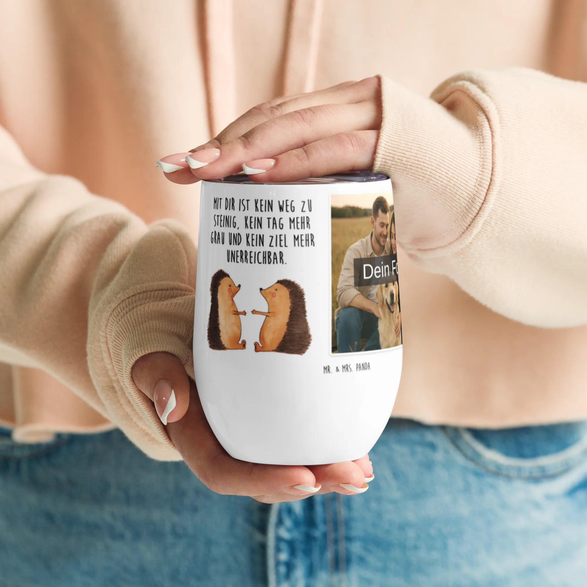 Personalized Photo Wine Mug Hedgehogs in love