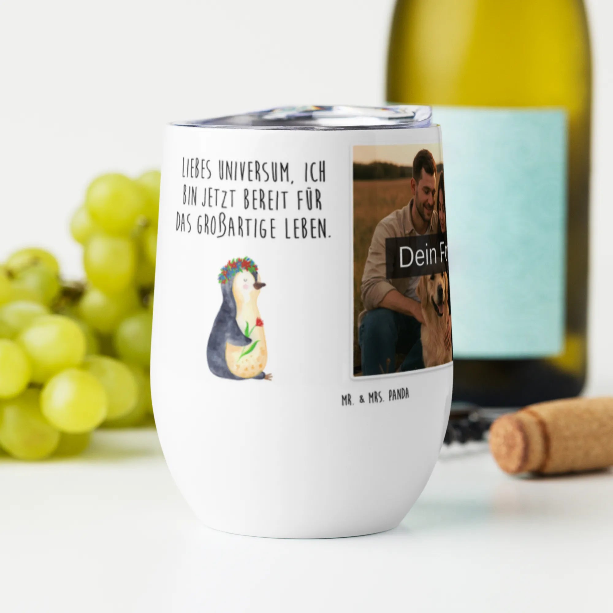 Personalized Photo Wine Mug Penguin Flower