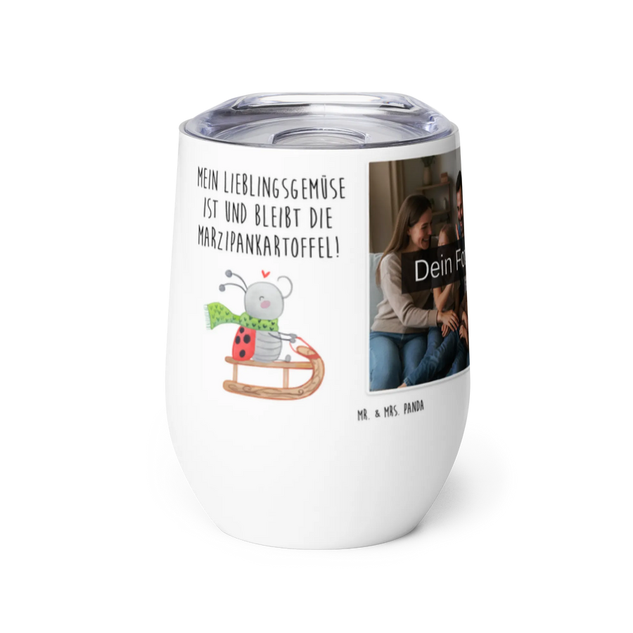 Imagine a little ladybug, all smiles as it embarks on a thrilling sledding adventure, wrapped in a charming green scarf with hearts. Surrounded by the crisp winter air and enchanted by the soft snow, it reminds us of the joy found in small pleasures. With its cheerful demeanor and the heartfelt slogan 'Mein Lieblingsgemüse ist und bleibt die Marzipankartoffel!', we are invited to find happiness in winter's charm and savor the sweetness of moments like marzipan treats, creating a delightful warmth that contrasts with the chilly season.