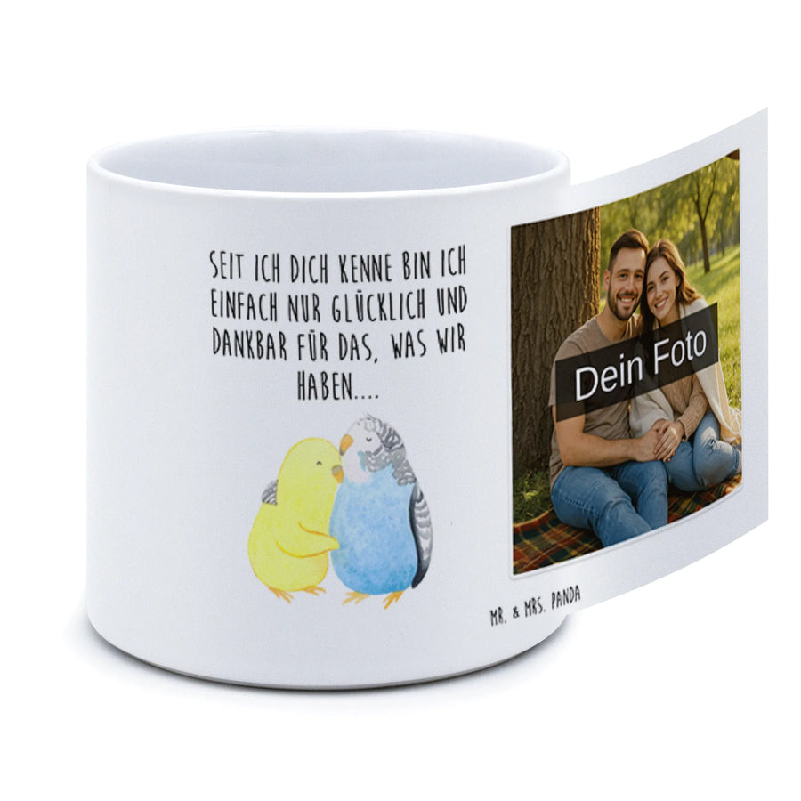 Personalisierter Foto XL Blumentopf Wellensittich Liebe