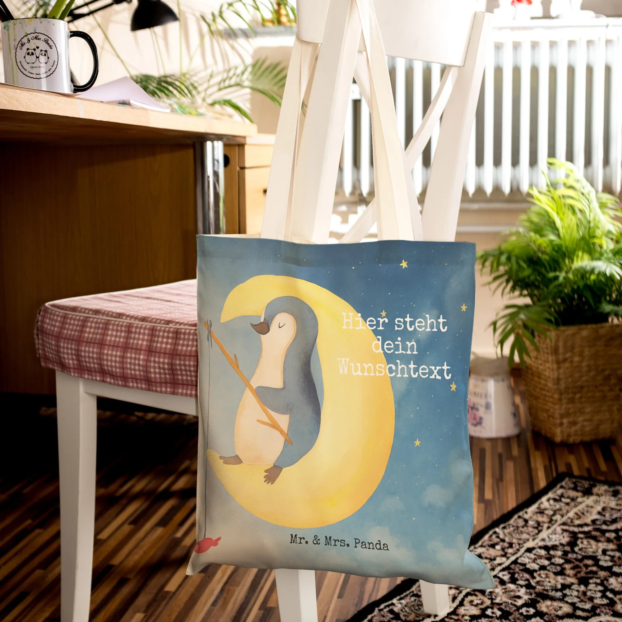 Personalisierte Einkaufstasche Pinguin Mond Design