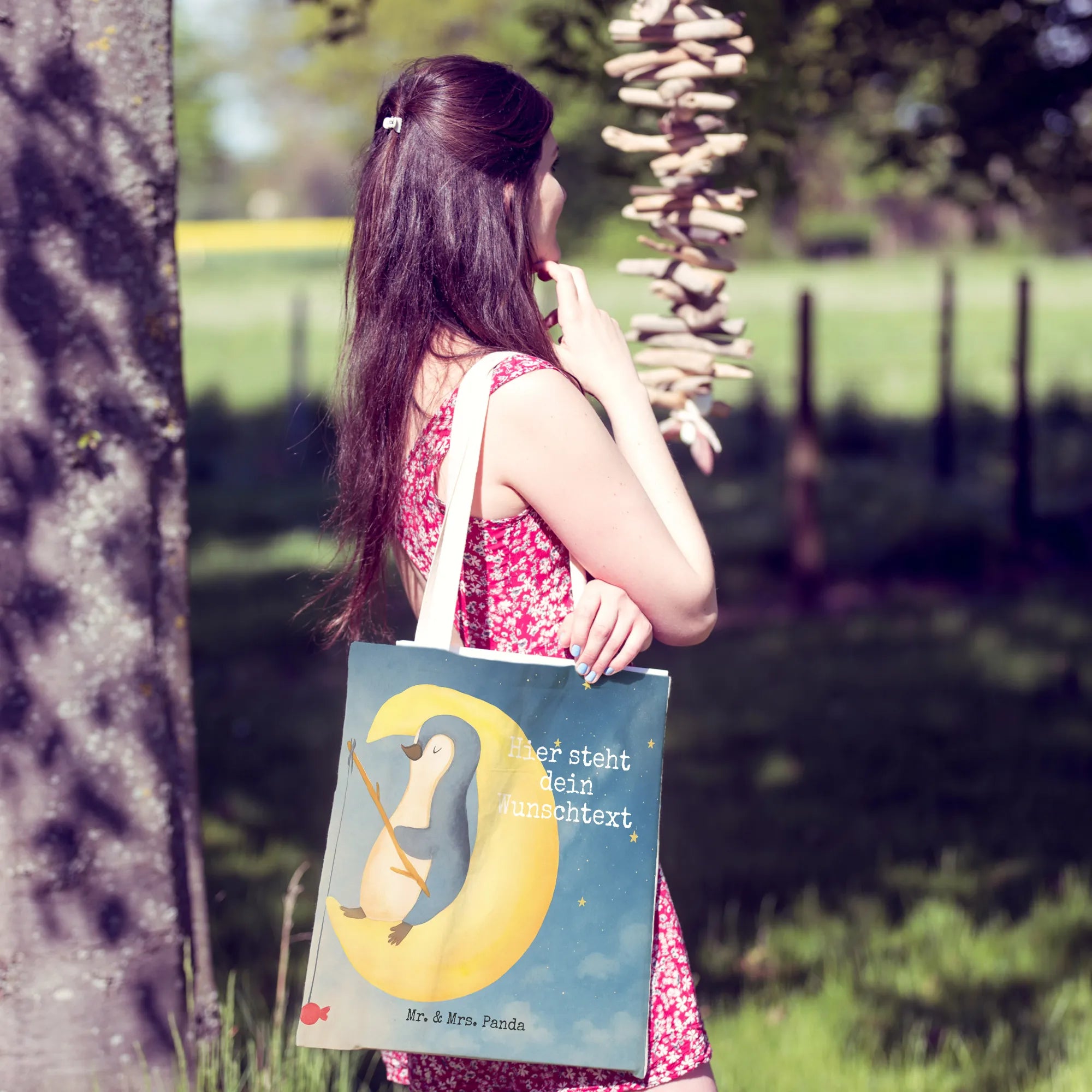 Personalisierte Einkaufstasche Pinguin Mond Design – Mr. & Mrs. Panda