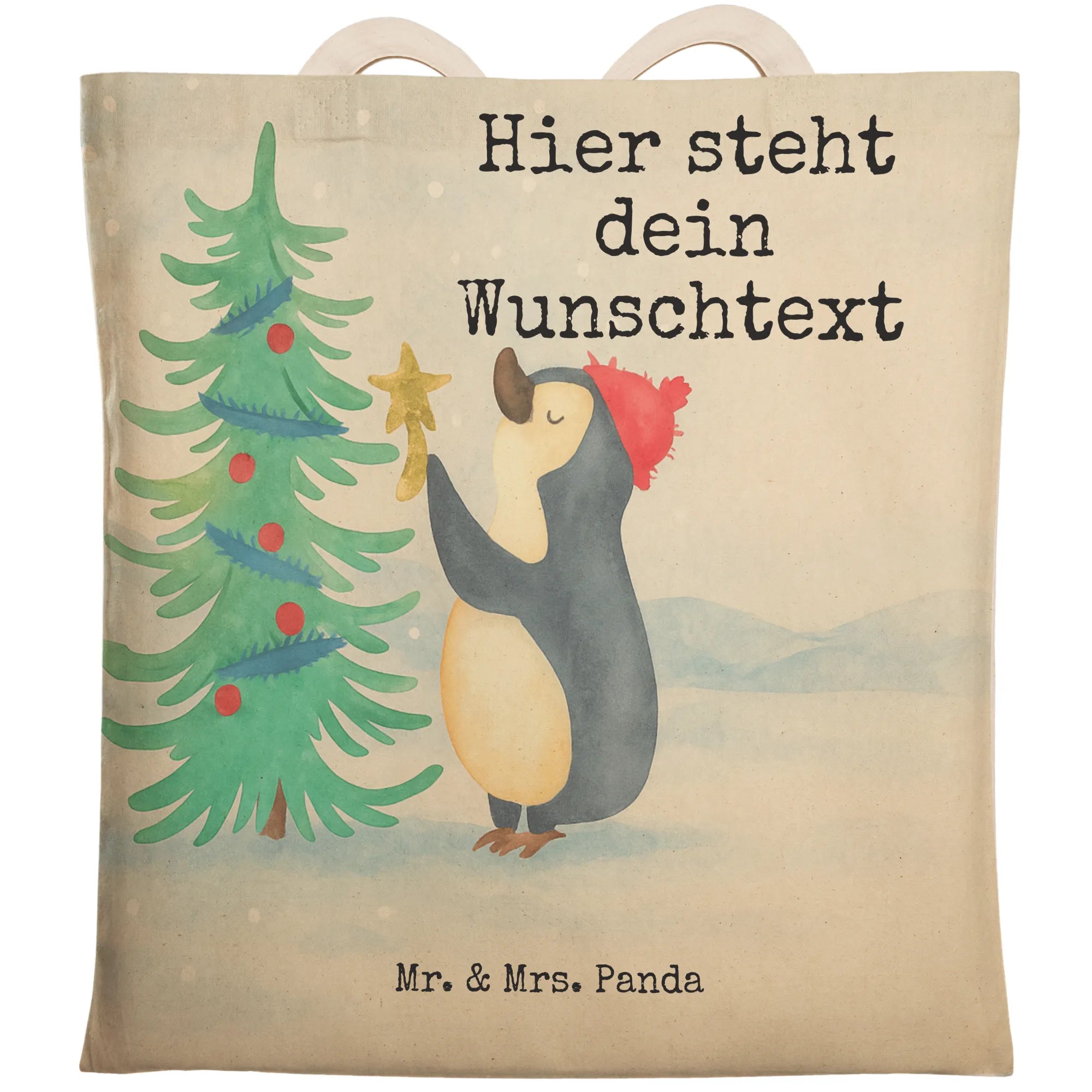 Personalisierte Einkaufstasche Pinguin Weihnachtsbaum Design