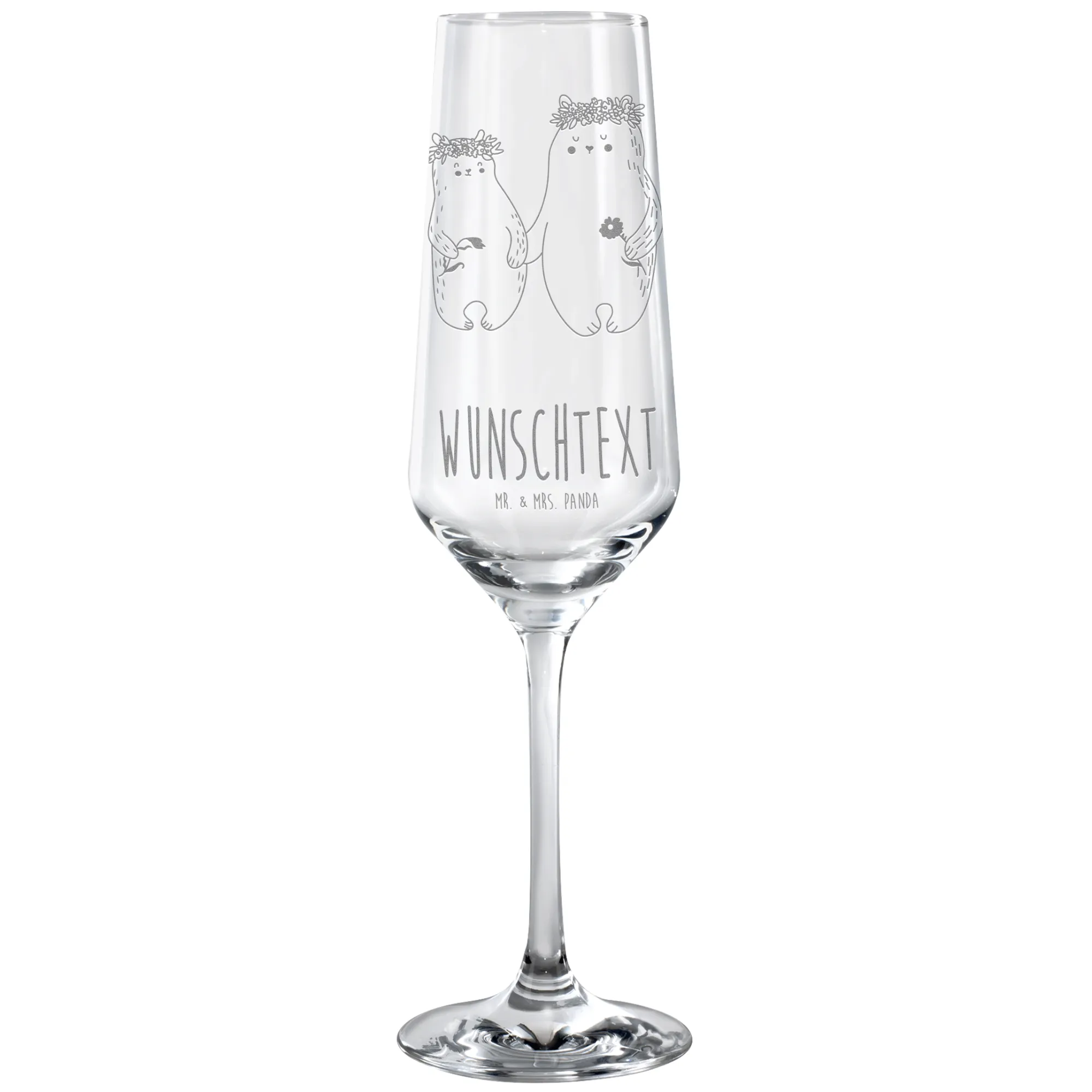 Personalized Sparkling Wine Glass Bears with flower crown – Mr. & Mrs. Panda