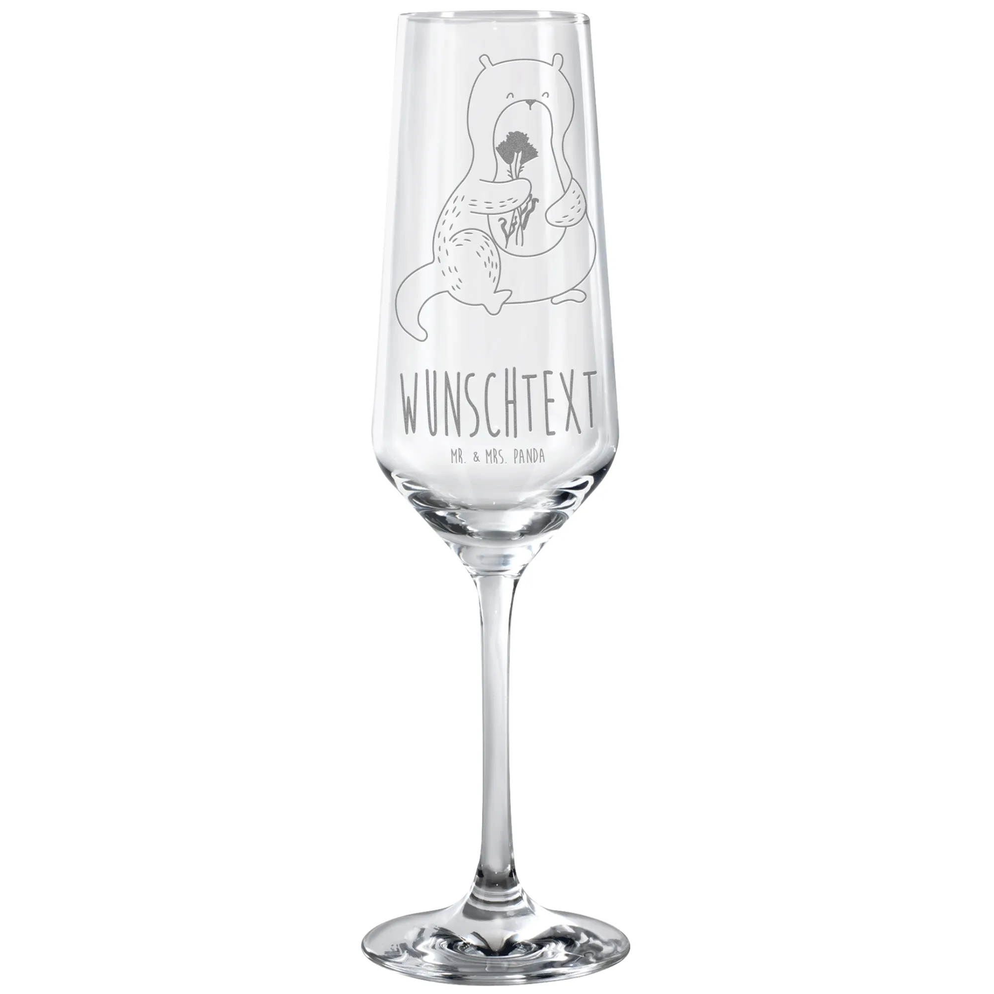 Personalized Sparkling Wine Glass otter Bunch of flowers