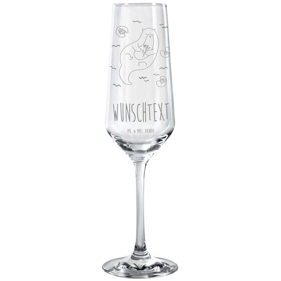 Personalized Sparkling Wine Glass otter Water Lily
