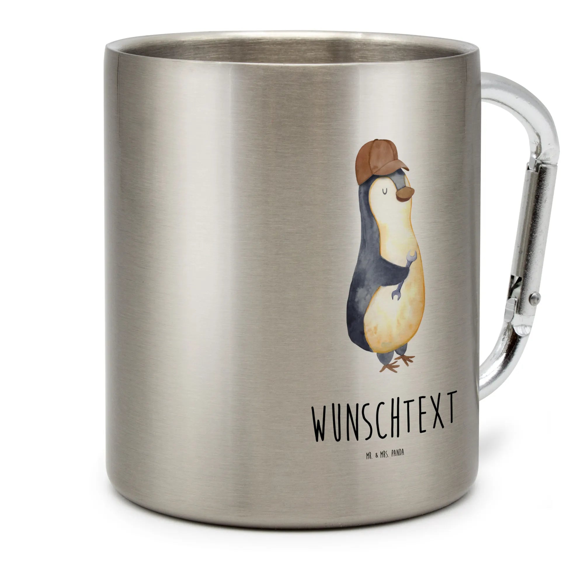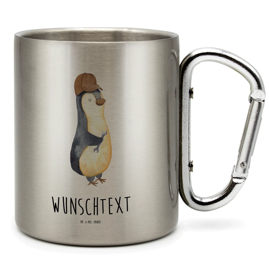 Meet your new favorite go-to, the Personalized Stainless Steel Mug from Mr. & Mrs. Panda! Measuring 90 mm (4 inches) in height and 80 mm (3 inches) in diameter, it's crafted from sturdy stainless steel, ensuring longevity. You can personalize this mug with your name or a fun phrase to make it distinctly yours. The mug is perfect for both hot and cold drinks, boasting a capacity of 330 ml (11 oz). It's super light and easy to carry around, thanks to the integrated carabiner hook that lets you attach it to your bag or belt. Ideal for camping trips, picnics, or even those cozy days at home, it keeps your beverages at the desired temperature for hours. Please note that while it’s tough and durable, it isn’t dishwasher safe—hand washing with care is the way to go. Grab yours today for a practical yet stylish addition to your drinkware collection!