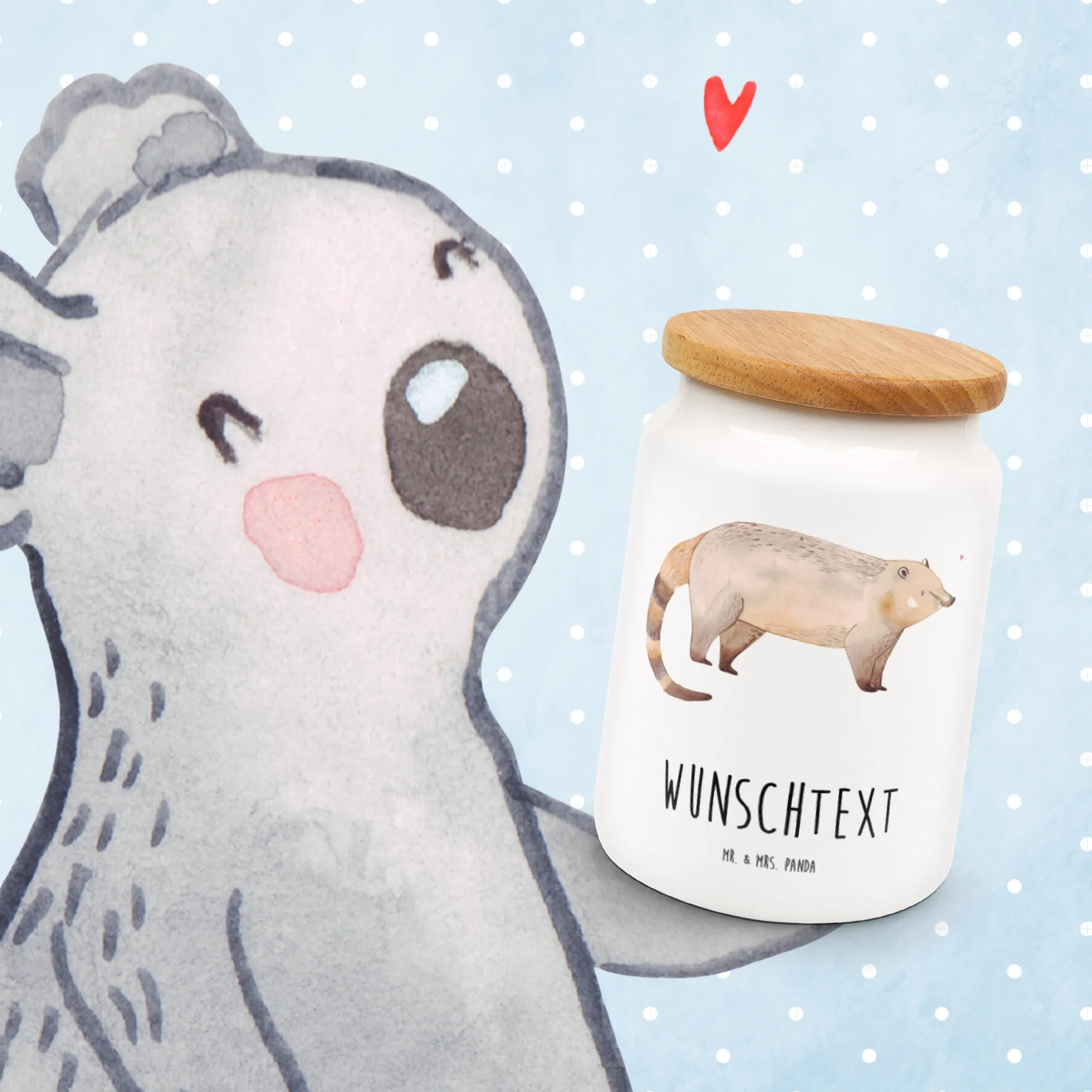 Personalized Storage Jar Coati personalized storage jar, personalized cookie jar, monogrammed food storage, personalized treat jar, engraved kitchen jar, custom treat canister, personalized canister, personalized cookie tin, personalized ceramic jar, personalized storage container, custom pantry container, small animals, cute, funny, cute animal motives, hand drawn, small world, funny sayings, good mood, happy, gifts, gift ideas, special gifts, animal lover, card, nose bear, Nose bear, trunk bear, bear